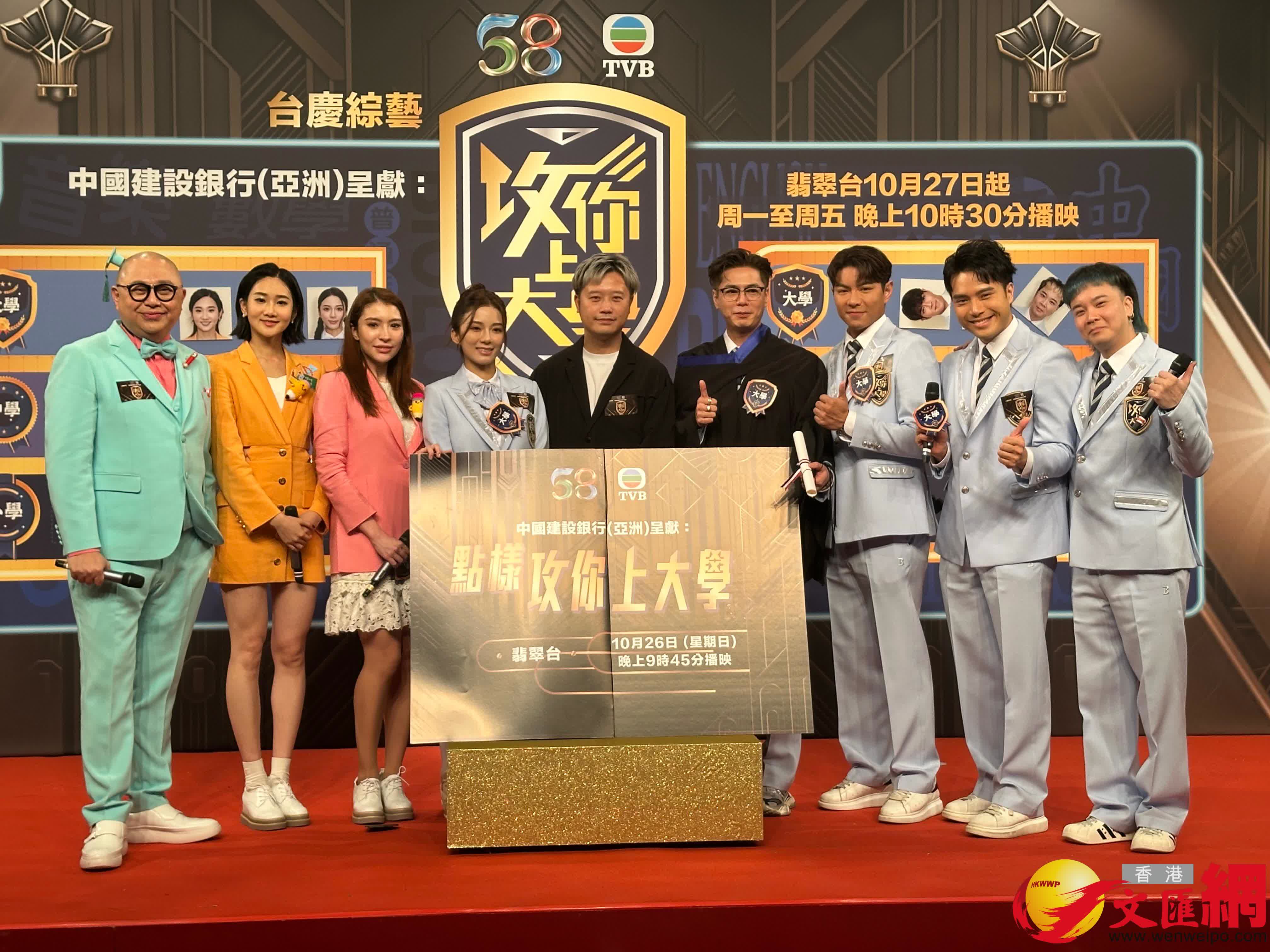 香港文匯報訊(記者 子棠)羅子溢、羅天宇、陳星妤等今日換上校服Look,聯同林盛斌(阿Bob)、施宇琪和袁文靜3位節目主持出席TVB台慶綜藝節目《攻你上大學》記者會,並即場進行問答比賽,最後由只有高中學歷的羅子溢擊敗劍橋學霸施宇琪奪冠!