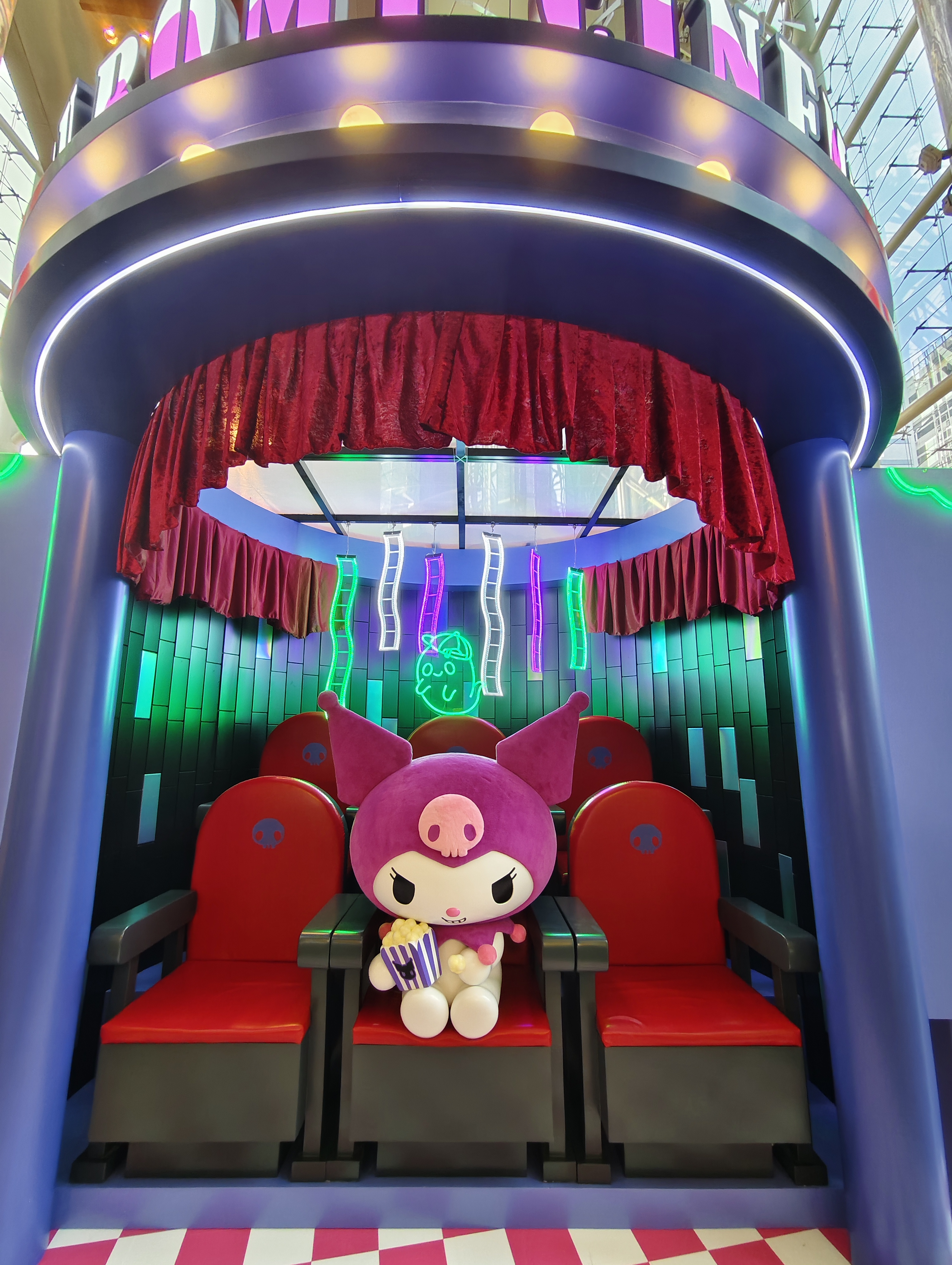 由即日起至11月2日期間,這位「最可愛反派」KUROMI化身為電影大亨,於商場4樓中庭開設首間「怪異影院」,影院以KUROMI最愛的黑色、配上紫色跟Shocking Pink作主題色,並融入Cute版骷髗圖案,呼應她的萬聖節生日,營造出獨特型格氛圍。「怪異影院」亮點包括3米高KUROMI以萌爆造型衝破電影海報而出、沉浸式KUROMI怪異影院互動體驗、風格搞怪的電影海報,以及具收藏價值的20周年別注版玻璃彩繪LED發光傘等。