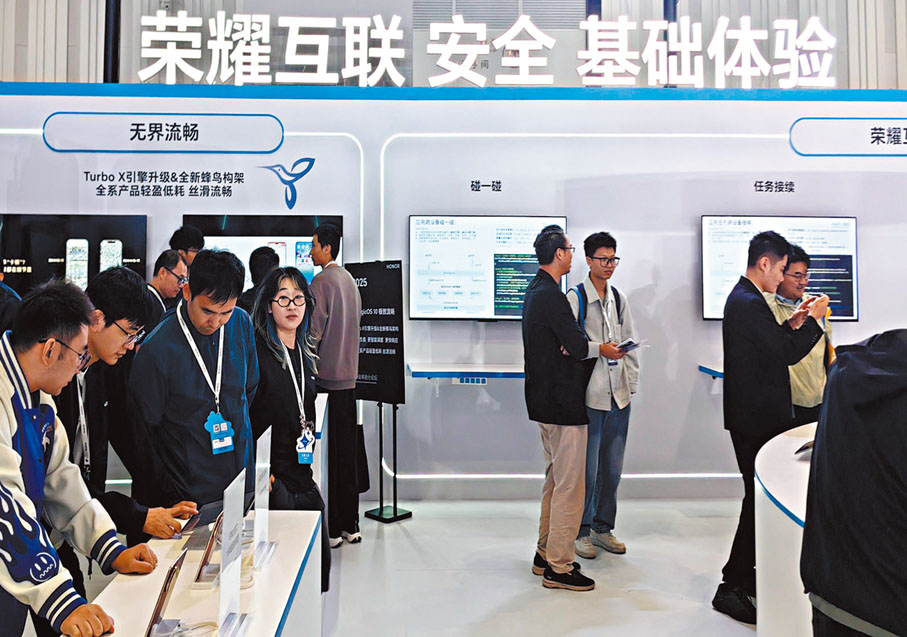 榮耀首屆全球開發者大會暨AI終端生態大會,昨日在深圳坪山舉行,主題為「智聯無界·生態共創」。作為榮耀向AI終端生態公司轉型的關鍵落子,大會系統展示其在AI終端生態領域的完整布局,不僅通過升級HONOR AI Connect平台、開放核心AI能力,更推出8大AI場景化生態解決方案等舉措,以「以人為中心」為核心,推動AI技術與真實生活深度融合。據悉,榮耀累計投入超100億元人民幣用於AI研發,攜手全球合作夥伴開啟「萬物智聯新紀元」。●圖文:香港文匯報記者 郭若溪