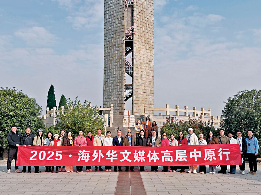 作為「2025海外華文媒體高層中原行」的重要一站,23日上午,來自全球30家海外華文媒體高層齊聚滎陽,先後探訪黃河中下游分界碑、遠觀桃花峪黃河大橋、憑弔楚河漢界鴻溝遺蹟,在古今交融的實景畫卷中,親身感受中原大地的歷史底蘊與時代活力。