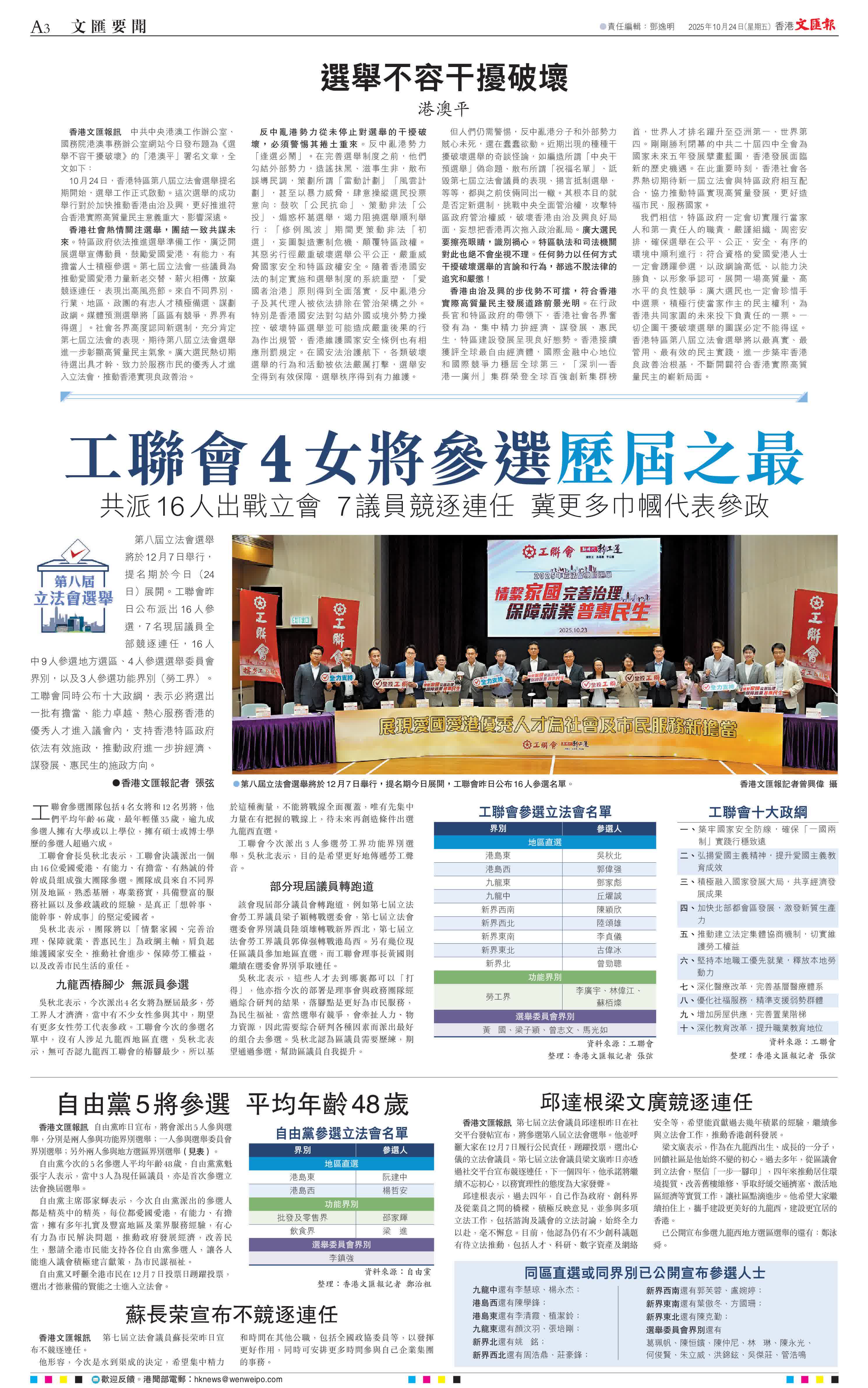 工聯會今次派出3人參選勞工界功能界別選舉,吳秋北表示,目的是希望更好地傳遞勞工聲音。