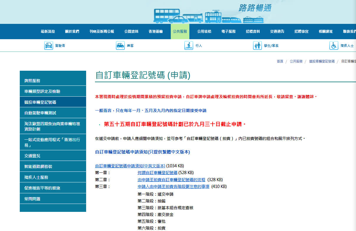 運輸署今日(24日)公布,第五十五期自訂車輛登記號碼一千五百份中籤申請的申請編號已上載於運輸署網站,並張貼於運輸署各牌照事務處通告板上。
