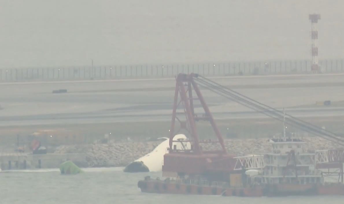 香港文匯報訊(記者 蕭景源)本周一(20日)凌晨,一架由阿聯酋抵港、航班編號UAE9788的波音747-400貨機,在香港國際機場北跑道降落滑行時,突然急轉向偏離跑道撞向巡邏車一起墮海,釀成巡邏車上兩名AVSECO機場保安人員死亡;事故後,涉事貨機殘骸一直擱在海面等候吊運處理。