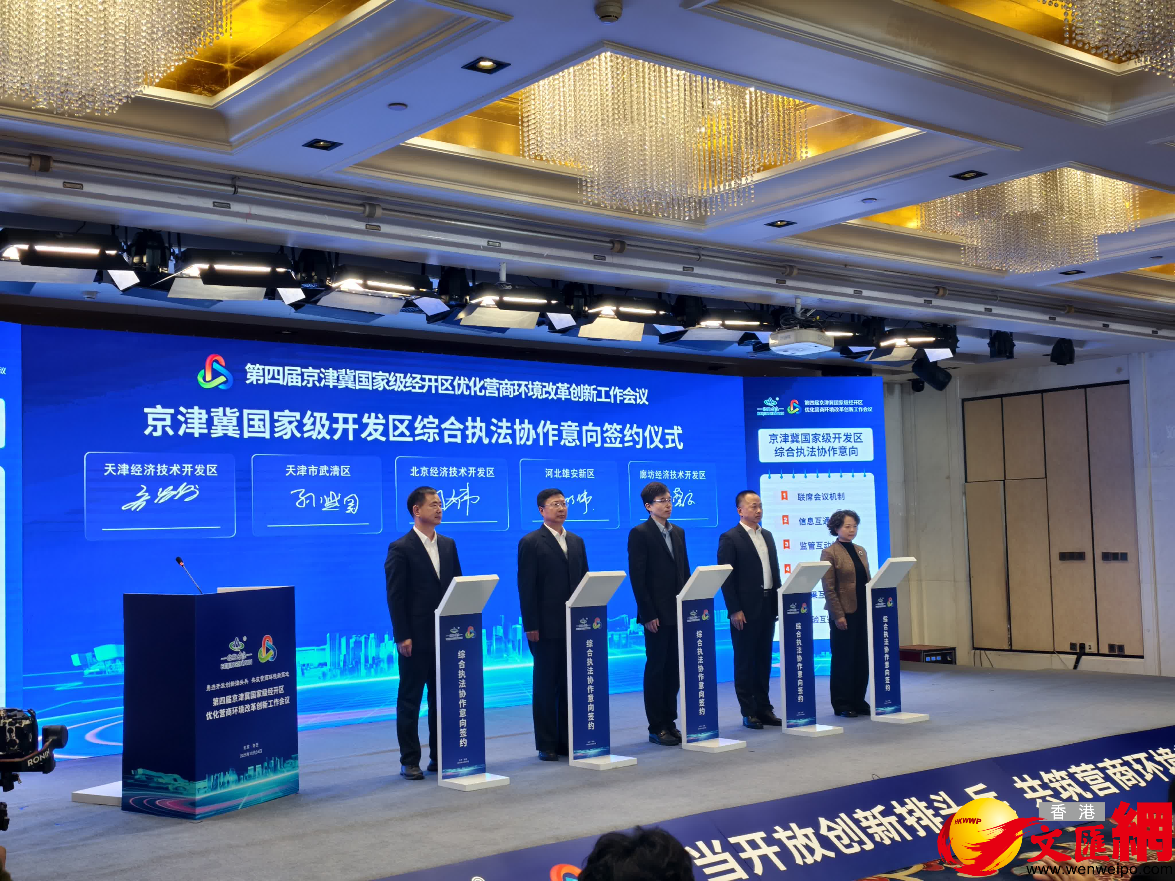 (香港文匯網記者 馬曉芳)第四屆京津冀國家級經開區優化營商環境改革創新工作會議24日在北京經濟技術開發區召開,北京經開區、天津經開區、曹妃甸經開區、石家莊經開區等10家經開區聯合發布了涵蓋近2000項事項的「區域通辦」清單,覆蓋市場准入、項目落地、資質認證、人才服務等企業經營全生命周期高頻事項。北京經開區、天津經開區、天津市武清區、廊坊經開區、河北雄安新區代表共同簽署了《京津冀國家級開發區綜合執法協作意向》,促進京津冀地區統一大市場建設。