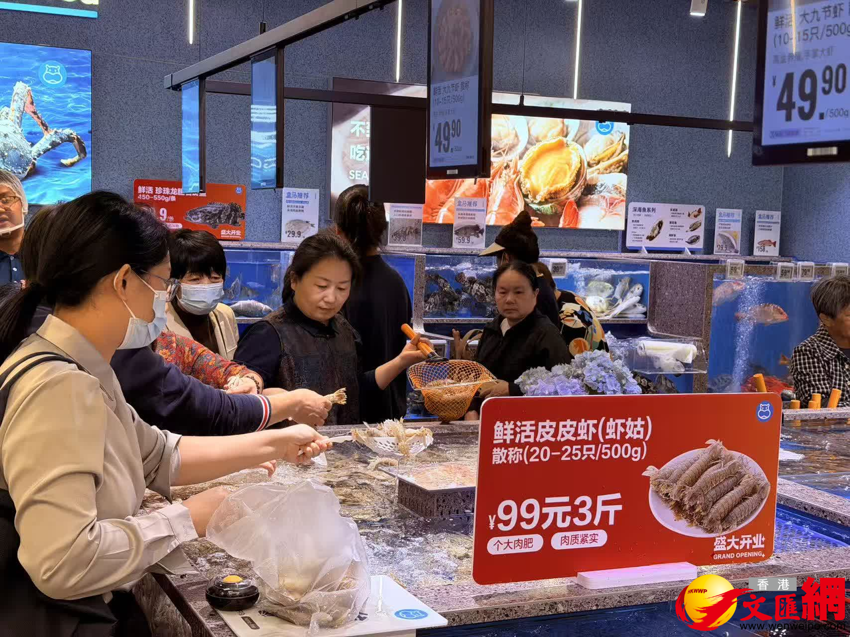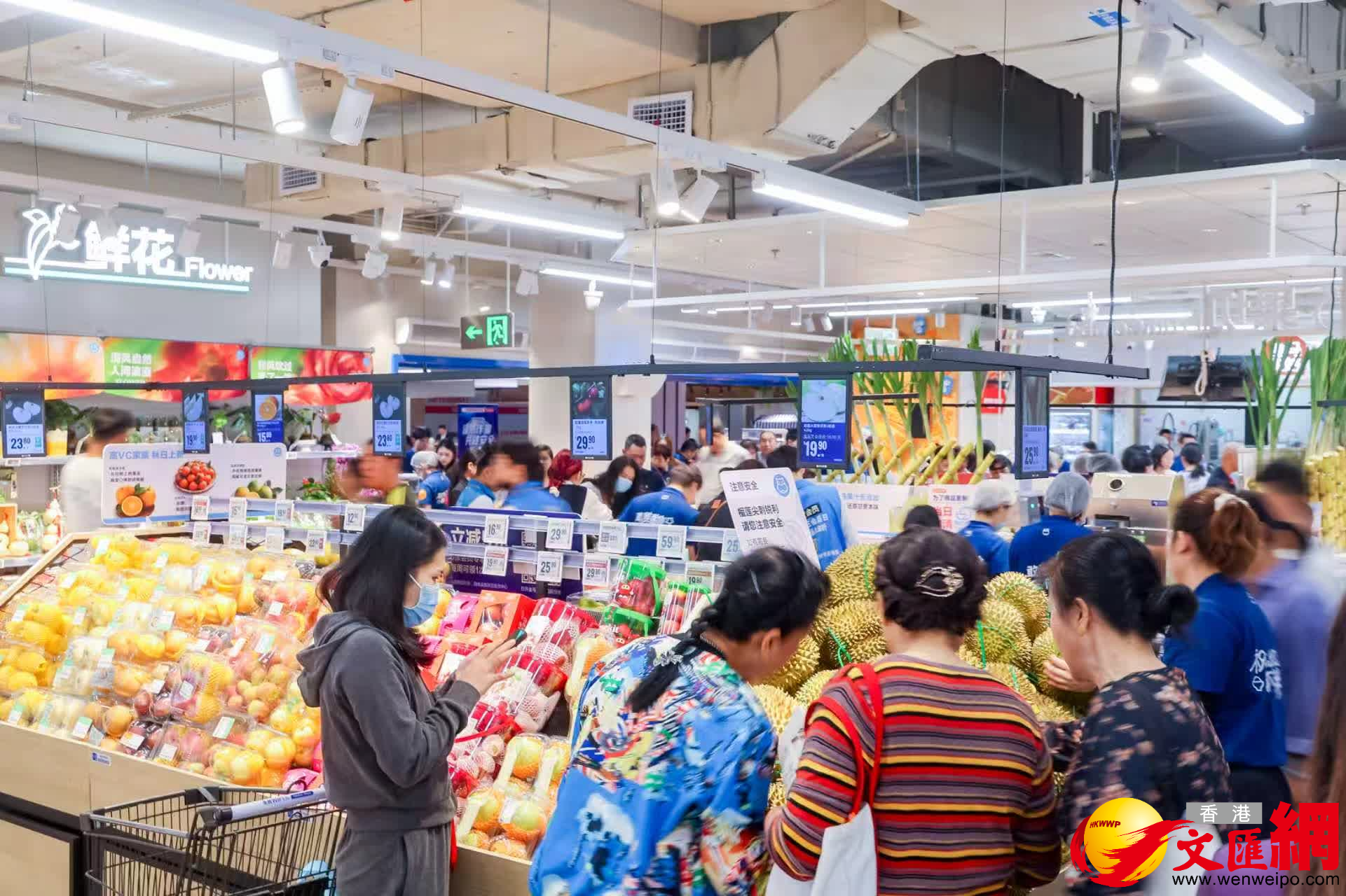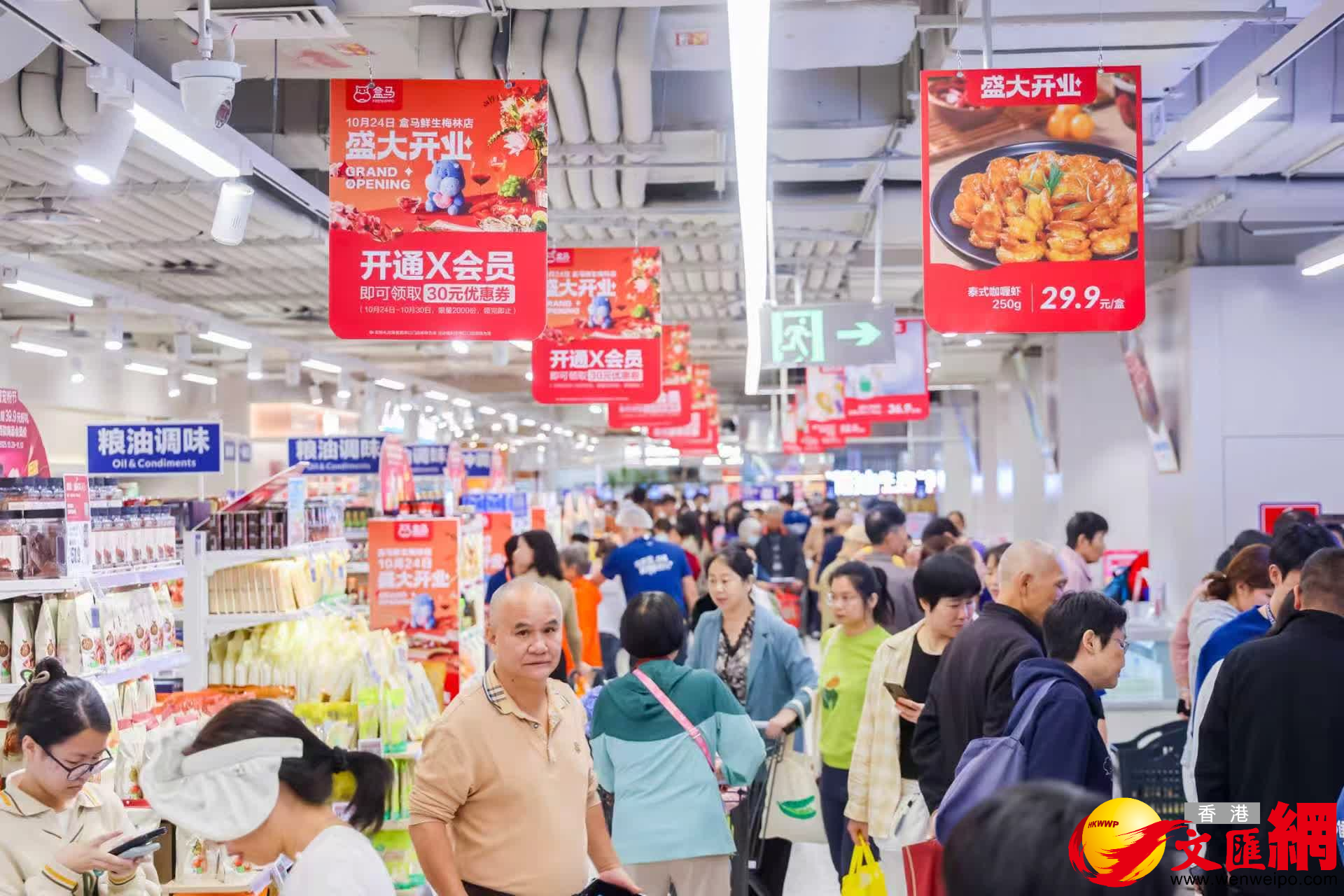 (香港文匯網記者 郭若溪)10月24日,深圳梅林安薈鄰迎來新客。深圳盒馬鮮生梅林店於今日正式開業,周邊居民區環繞,對於高品質消費需求的缺口較大,而盒馬鮮生的入駐正好填補了這一空白。記者在現場看到,為了承接「港客北上」的消費熱潮,依託盒馬強大的供應鏈能力,店內還設有專門的供港商品專區,吸引不少港客選購。