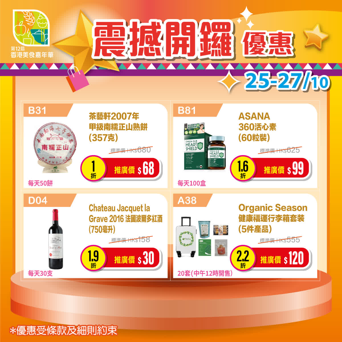 展會期間,主辦單位將推出三重購物優惠,包括「震撼開鑼優惠」、「閉幕必買優惠」、以及全新的「10蚊開心購」,數十款精選產品,例如白酒、保健品、各式零食,以及臘腸等,一律以10蚊發售。