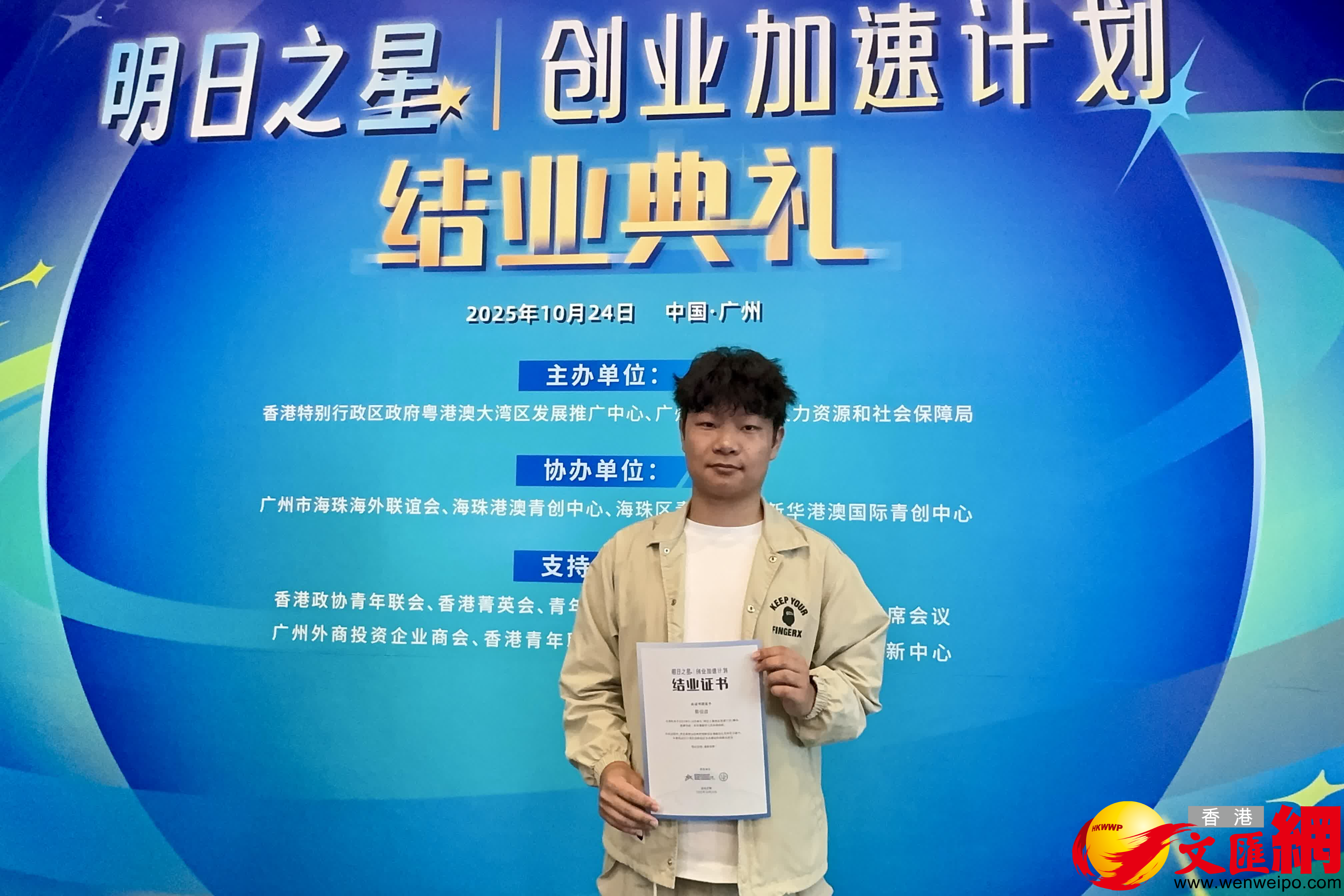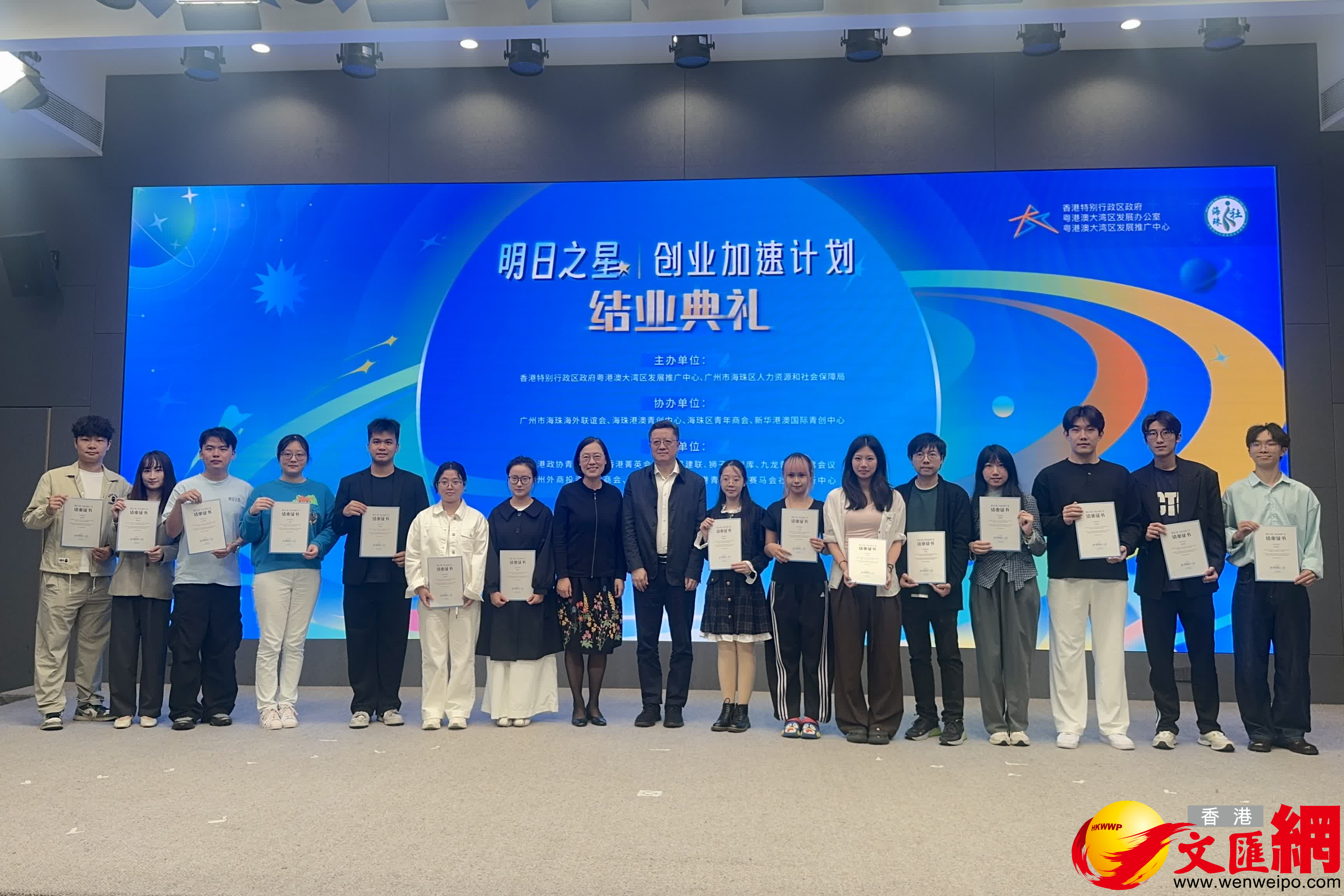 (香港文匯網記者李紫妍 廣州報道)由香港特別行政區政府粵港澳大灣區發展推廣中心(推廣中心)與廣州市海珠區人力資源和社會保障局聯合主辦的「明日之星創業加速計劃」(下稱「明日之星計劃」)結業典禮今天(24日)在廣州舉行,計劃通過開展覆蓋AI與商業創新、數字營銷、企業參訪、政策對接及法律風控等多個維度的系列活動,幫助港澳青年全面提升創新創業能力,融入大灣區發展。在活動現場,AI、電商、文創、體育等不同領域創新創業的港澳青年們分享創業項目和成果,其中一批項目更現場簽署意向書,將加速落地。