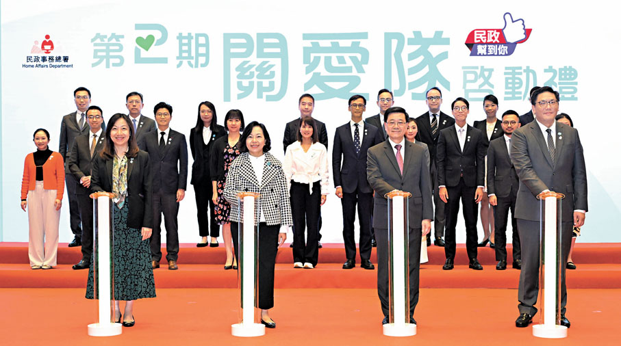 香港文匯報訊 第二期地區關愛隊啟動禮昨日舉行,特區行政長官李家超與全港十八區共455隊關愛隊代表一同見證第二期關愛隊正式啟動。李家超表示,兩年多以來,關愛隊成功實踐理念,成為特區完善地區治理的重要一環,亦是社區不可或缺的一部分。在恒常化運作模式及增加政府資助下,關愛隊在第二期服務開展時將進一步優化社區支援網絡,並按地區需要新增三支關愛隊小隊,同時優化KPI。政府又會加強培訓,讓關愛隊持續與政府部門、公共事業機構及地區組織深化應急支援合作,強化應對突發和緊急事故的能力。