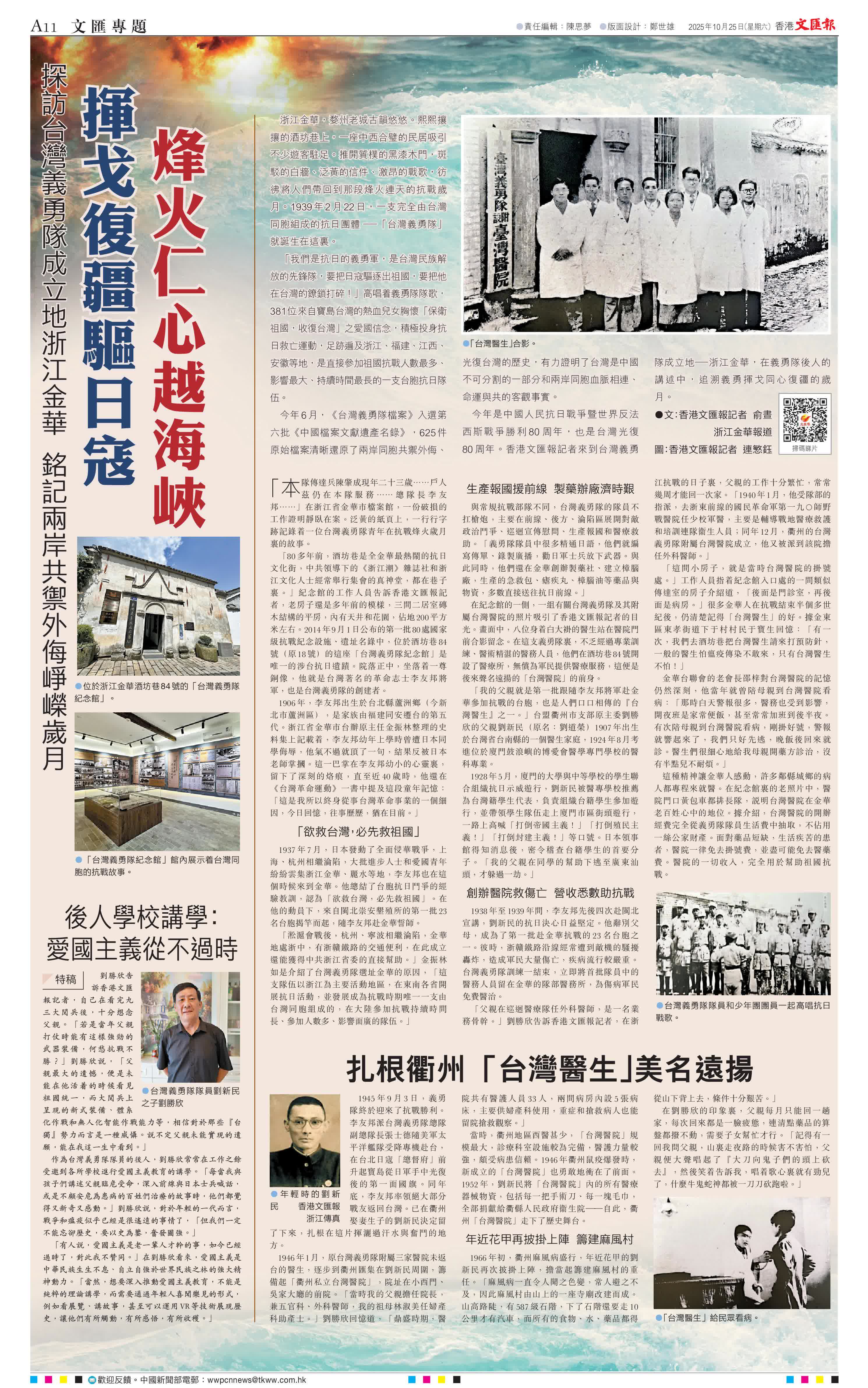 今年是中國人民抗日戰爭暨世界反法西斯戰爭勝利80周年,也是台灣光復80周年。香港文匯報記者來到台灣義勇隊成立地—浙江金華,在義勇隊後人的講述中,追溯義勇揮戈同心復疆的歲月。