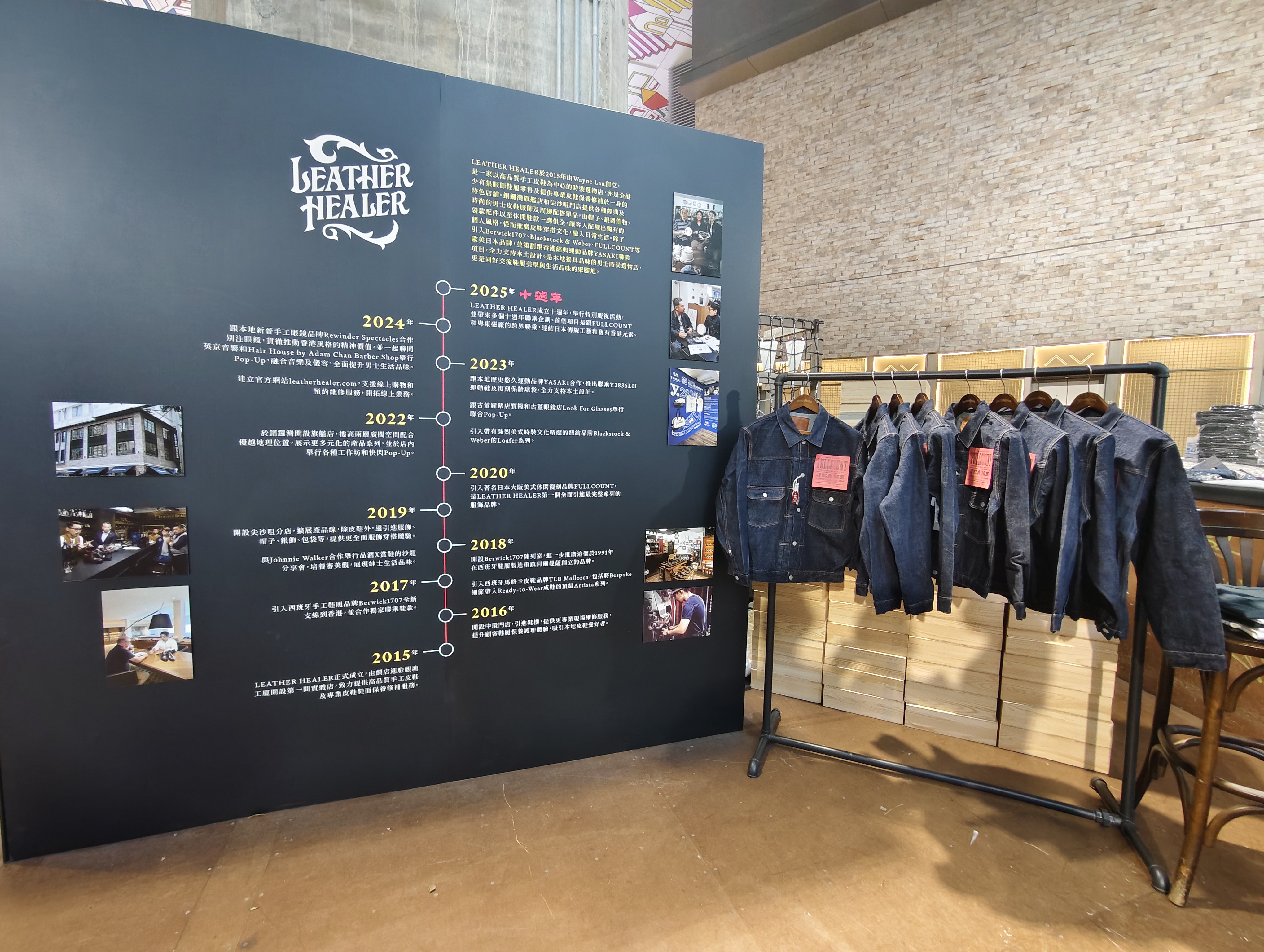 為記錄此特別時刻,品牌推出多款紀念單品,包括LEATHER HEALER x FULLCOUNT十周年紀念外套和粵東磁廠「香港紀念碟」的限量套裝,大家亦可即場預訂限量300本的LEATHER HEALER封面特別版《Lightning》特刊。