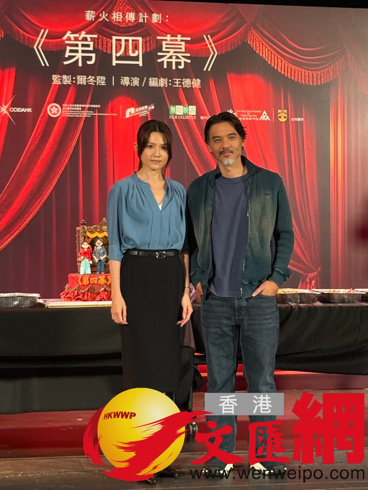香港文匯報訊(記者 阿祖)電影《第四幕》今日舉行開鏡拜神,監製爾冬陞、導演王德健,演員馮德倫、胡杏兒、袁澧林及周秀娜等一同出席。馮德倫與周秀娜(娜姐)合演夫妻,亦周旋於前度胡杏兒與徒弟袁澧林之間。馮德倫表示,雖然近年偶有客串港產片,但擔任主角的作品已相隔逾十年。今次復出主演,是因為劇本題材罕見,以舞台劇形式折射出每個角色的人生軌跡,令他感到格外有趣。戲中他與周秀娜有不少夫妻間衝突的戲份,目前已開工拍攝逾十日。