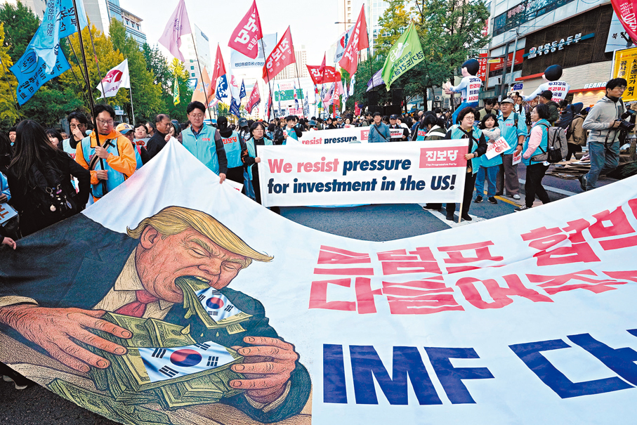 特朗普同時希望鞏固與韓國和日本的投資承諾,但並非沒有風險。美韓雙方目前仍在談判,美國財長貝森特日前提到雙方接近達成協議,韓國總統政策顧問金永範則指出,兩國已獲重大進展,但協議細節尚待商榷。特朗普7月宣布同意將韓國銷美產品的關稅降至15%,交換條件是韓方承諾對美投資3,500億美元(約2.7萬億港元),不過投資相關條款仍在激辯中,且汽車關稅仍存在。
