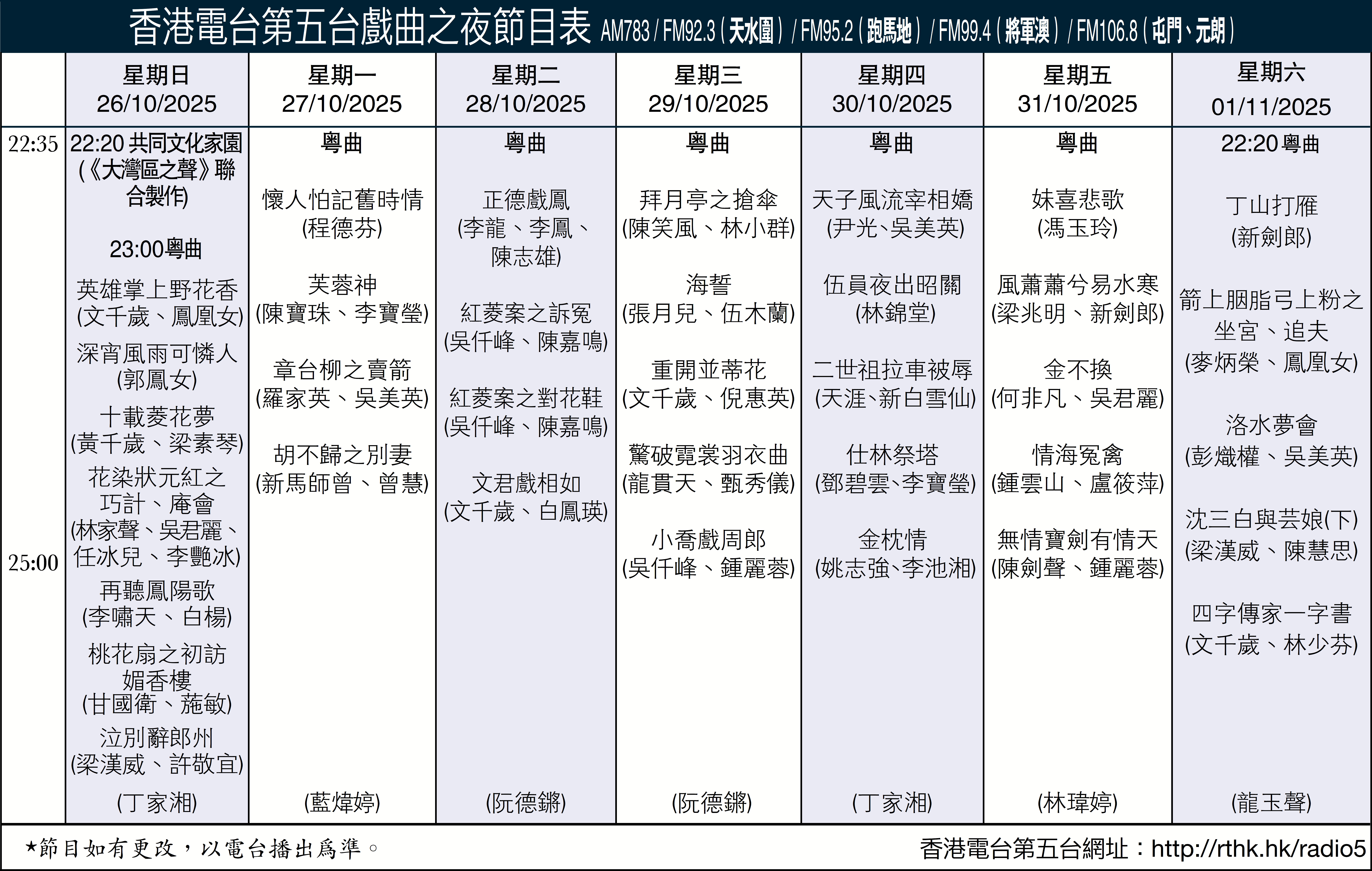 香港電台第五台戲曲之夜節目表