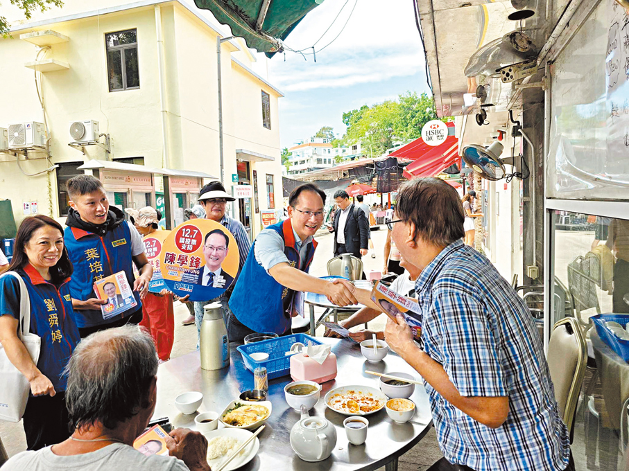 在港島西選區,已報名參選的陳學鋒昨日上午8時上船直奔長洲和南丫島。他說,團隊在當區長期服務,特別是颱風期間與政府各部門齊心辦實事,收到街坊正面反饋,心裏暖笠笠。對於離島發展,他期望能夠改善鄉郊渠務同道路等基建,讓大家面對極端天氣時更安心,並盡快推動「以灘養灘」,用好天然海岸線同沙灘,一邊保靚景一邊搞活海岸旅遊經濟。他亦希望推動「一島一節慶」,吸引更多人來玩、帶旺社區。
