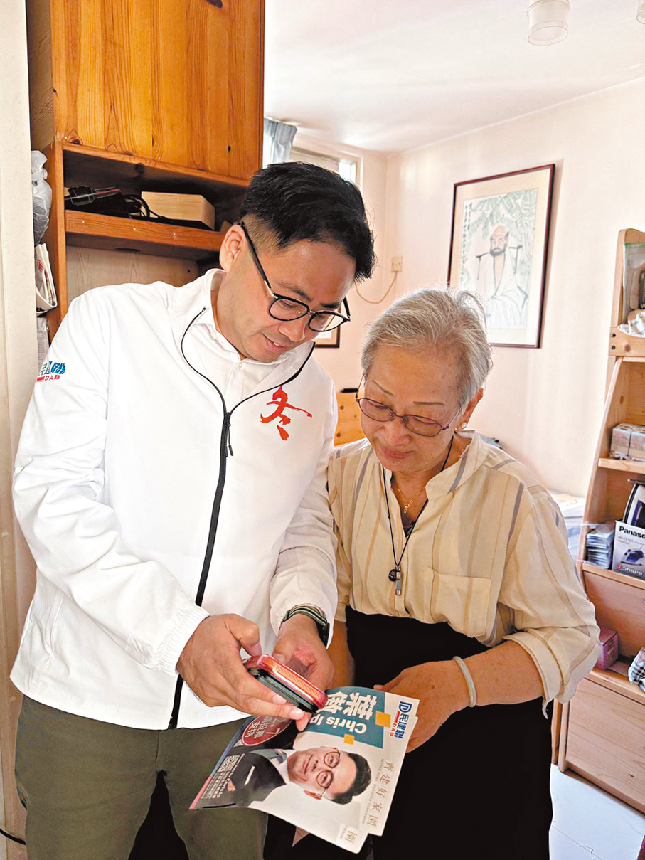 在港島東選區,已正式遞交提名的參選人吳秋北落區與長者交流。他昨日在社交平台發帖表示,自己過往成功推動政府開始整合高風險長者數據,及早識別及支援獨居雙老家庭,未來會繼續爭取免費普及樂齡科技,推進長者家居無障礙適老化改造,建設長者安全社區,以及活化空置幼稚園校舍,打造銀髮食堂、社區客廳等社區設施。他強調會保持謙卑的心,樂意接受大家考驗。