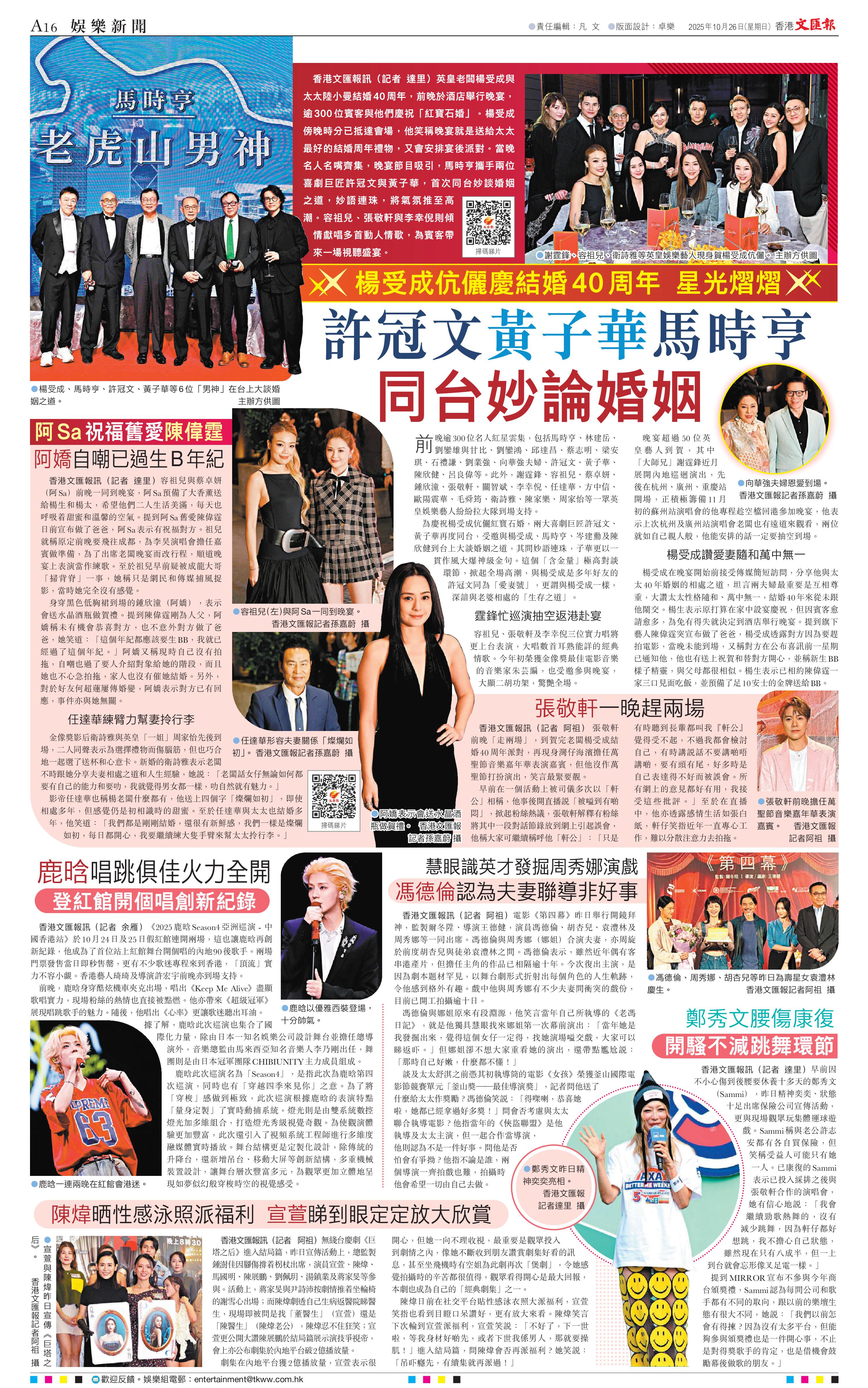 香港文匯報訊(記者 余雁)《2025鹿晗Season4亞洲巡演 - 中國香港站》於10月24日及25日假紅館連開兩場,這也讓鹿晗再創新紀錄,他成為了首位站上紅館舞台開個唱的內地90後歌手。兩場門票發售當日即秒售罄,更有不少歌迷專程來到香港,「頂流」實力不容小覷。香港藝人琦琦及導演許宏宇前晚亦到場支持。