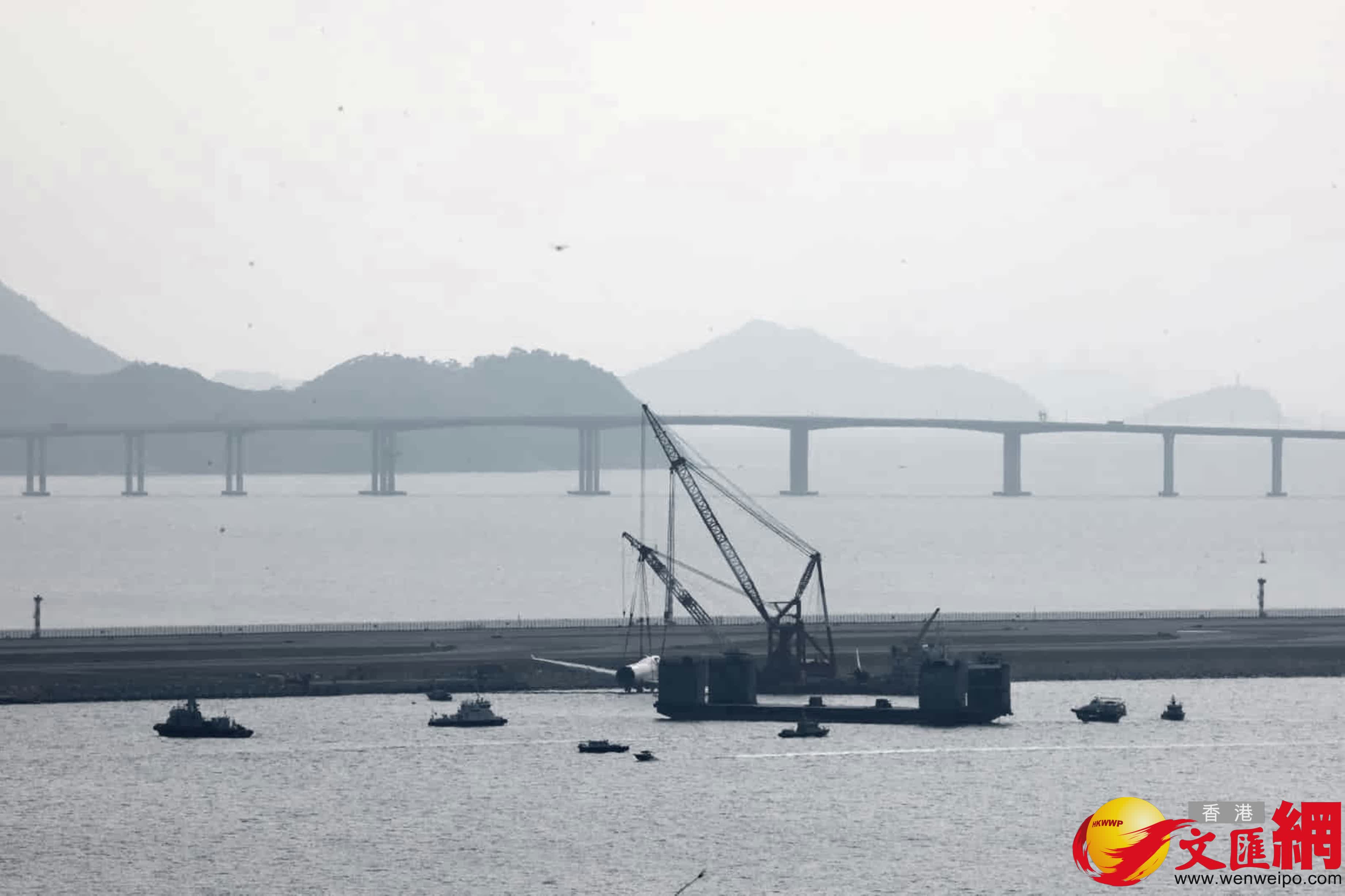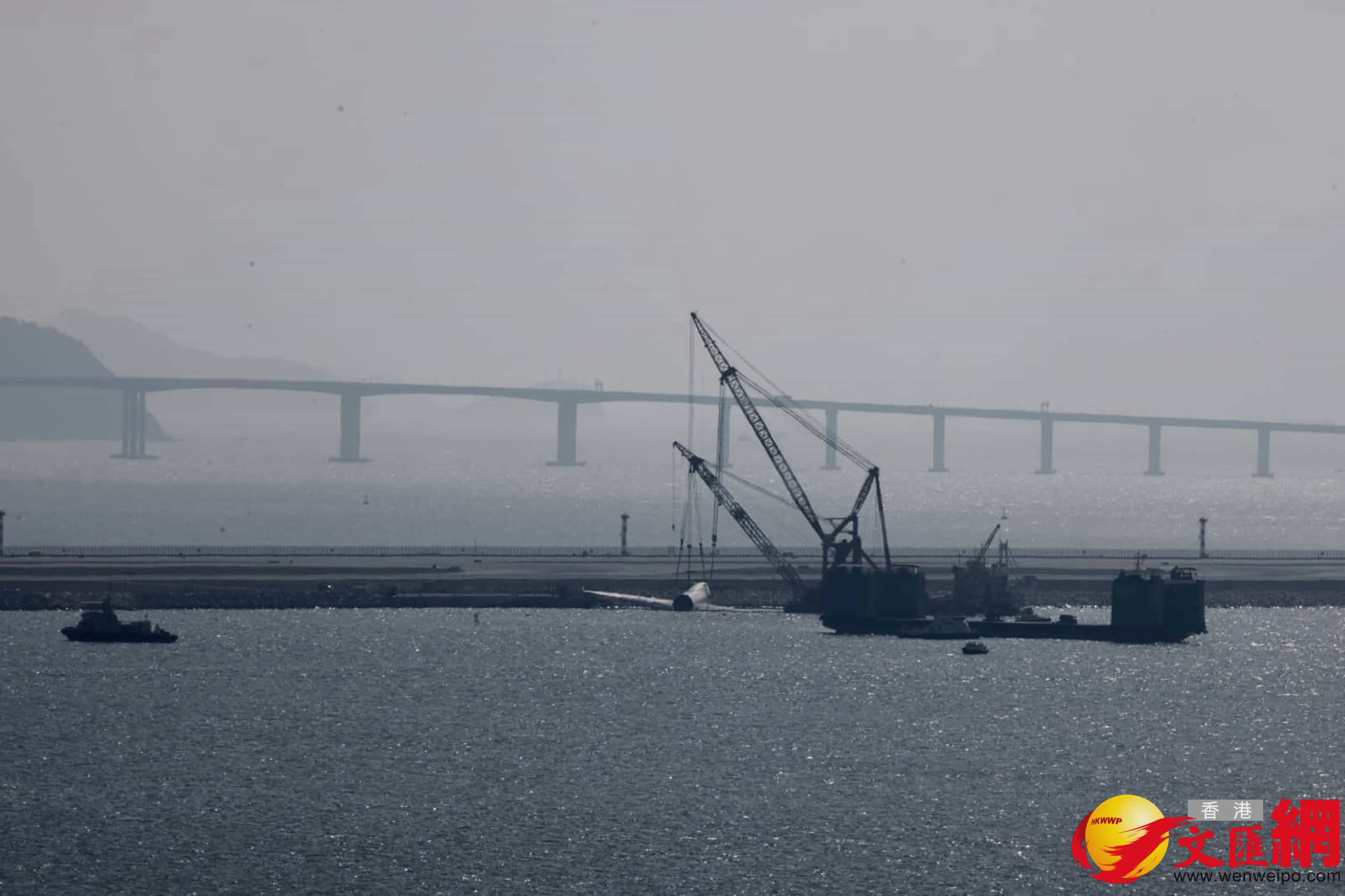 香港文匯報訊(記者 蕭景源)一架由阿聯酋抵港的波音747-400貨機,本月20日降落香港國際機場北跑道滑行期間偏離跑道撞向一輛保安巡邏車一同墮海,釀成車上兩人死亡,貨機則斷為兩截無人受傷。受香港機場管理局(機管局)委託的廣州打撈局專業團隊今日(26日)進入第四日打撈貨機殘骸工作,兩艘打撈船「南天翔」和「南天鵬」中午過後開始逐部從海中吊起機身連機頭。