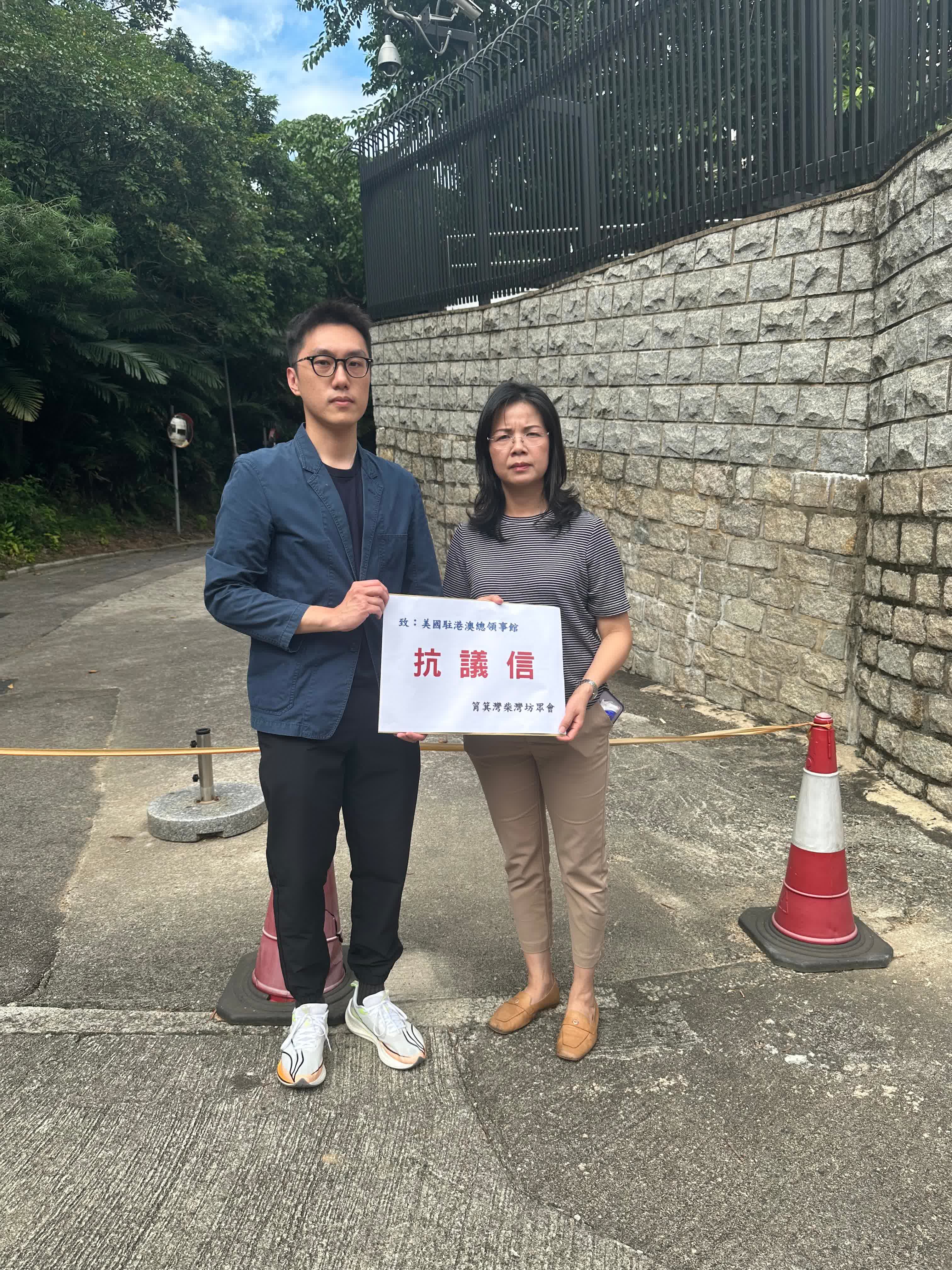 香港文匯報訊 有美國政客近日企圖妨礙香港司法公正,干預黎智英案。今日(26日)下午,有多個市民團體前往美國駐港澳總領館前集會表達強烈抗議並遞交抗議信。