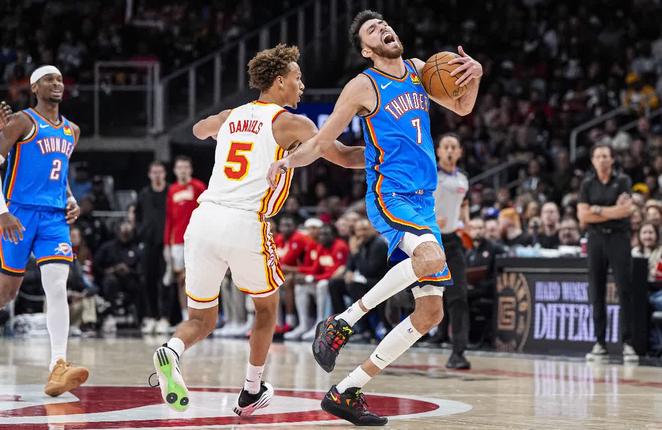 香港文匯報訊(記者 楊浩然)NBA周日舉行多場常規賽,其中衛冕的雷霆作客以117:100輕取鷹隊,開季三戰全勝銳不可擋。