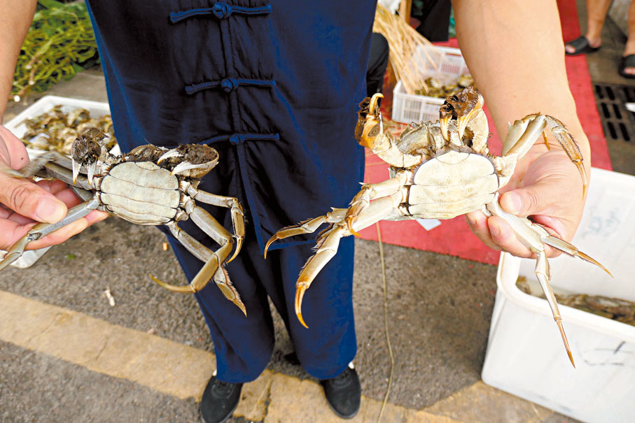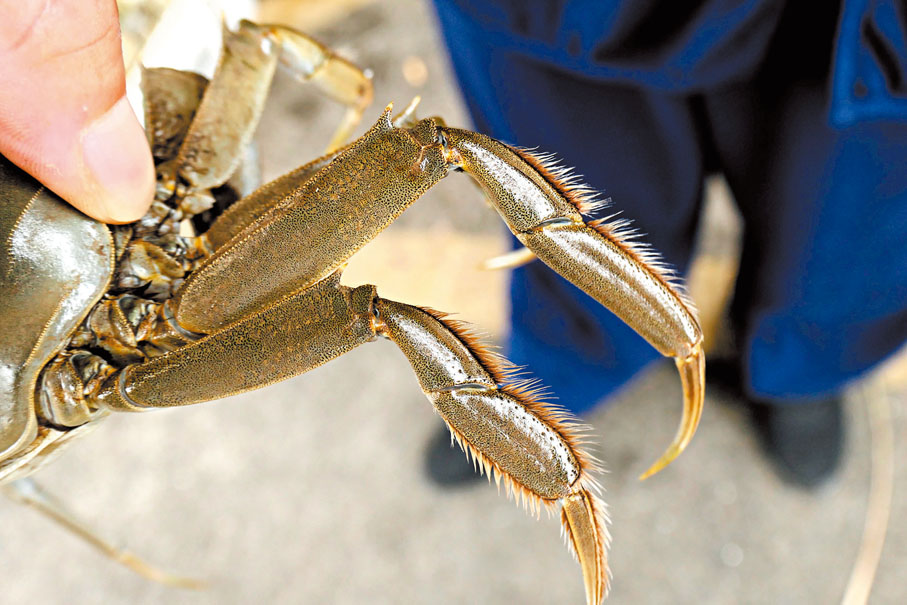 【捏蟹腿】好的螃蟹腿部堅硬有力,差的螃蟹則腿部鬆軟無力。