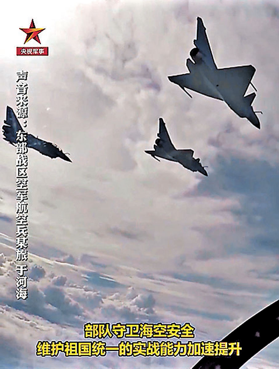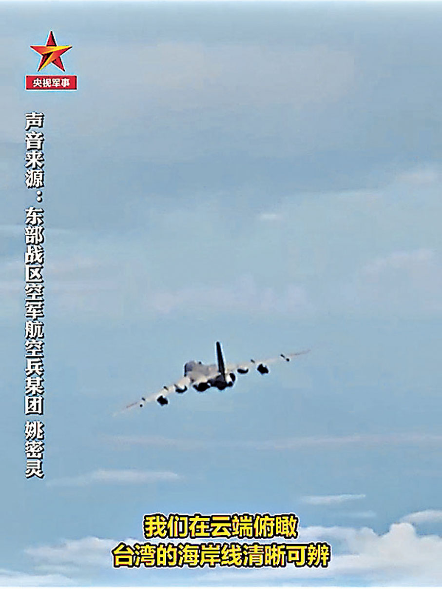 數架殲-10以戰鬥編隊飛赴某目標空域,多架轟-6K赴台島周邊海空域展開模擬對抗訓練……「用實際行動捍衛國家主權和領土完整,守護千千萬萬人民安寧與幸福,是我們的莊嚴承諾。」●央視軍事