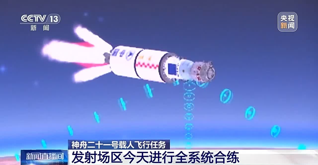 神舟二十一號船箭組合體已於本月24日轉運至發射區,計劃於近日擇機發射。今天(10月27日),發射場區組織各單位展開全系統合練。