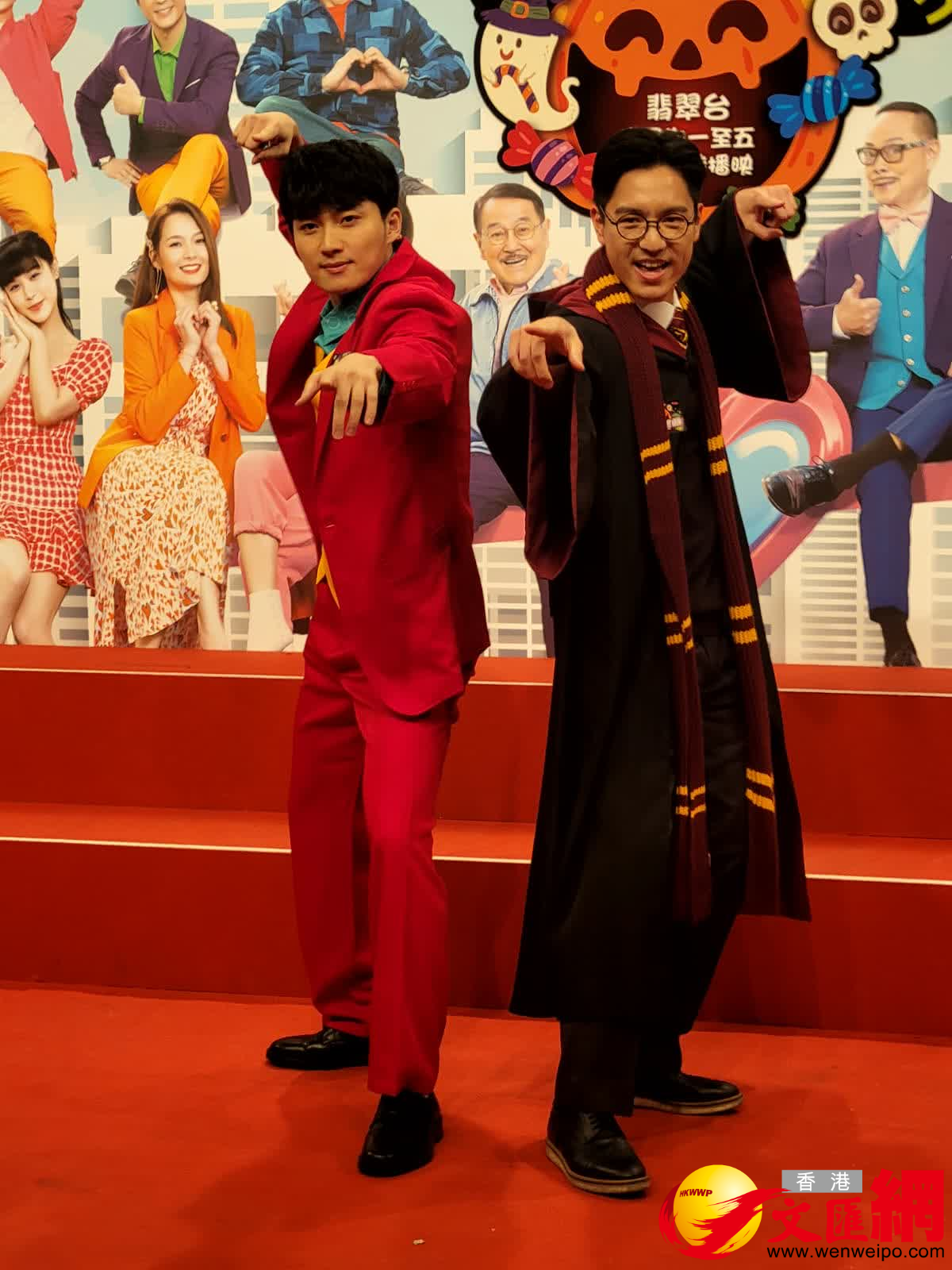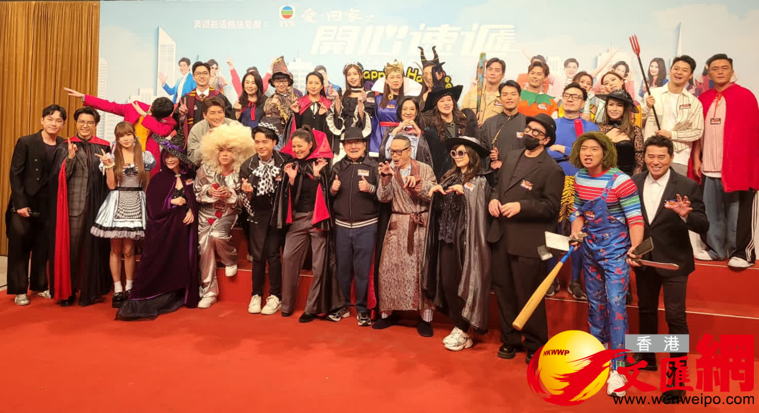 香港文匯報訊(記者 梁靜儀)劉丹(丹爺)、滕麗名、周嘉洛、陳浚霆、古佩玲、吳偉豪及湯盈盈等,今日以萬聖節造型現身電視城,出席處境劇《愛.回家之開心速遞》記者會大玩遊戲嗨不停。為配合迎全運、迎台慶,劇集由11月3日至11月7日,將播出一連五集的一小時版本。