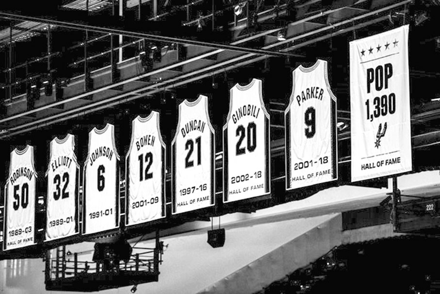 由於普波域治不愛張揚,馬刺向這位老教頭致敬的方式亦十分低調,只是在主場球館的退役球衣區懸掛一面新旗幟,上面寫着「Pop 1,390」,下方有球隊標誌及「名人堂」字樣。雲班亞馬說:「這大概就是普波域治想要的方式吧。那面旗幟的確應該掛在那裏。」這面旗幟紀念普波域治生涯1,390場NBA執教勝利紀錄,以及他在2023年入選籃球名人堂的榮耀。旗幟上方有5顆星,象徵普波域治執教期間帶領馬刺奪得的五座NBA總冠軍。