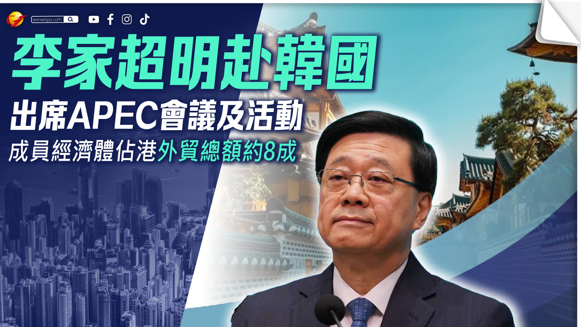 香港文匯網訊 李家超將於10月29日赴韓國慶州出席亞太經合組織第三十二次領導人非正式會議。李家超將會參與一系列活動,並與其他經濟體的領導人舉行雙邊會談,探討擴大合作機遇。