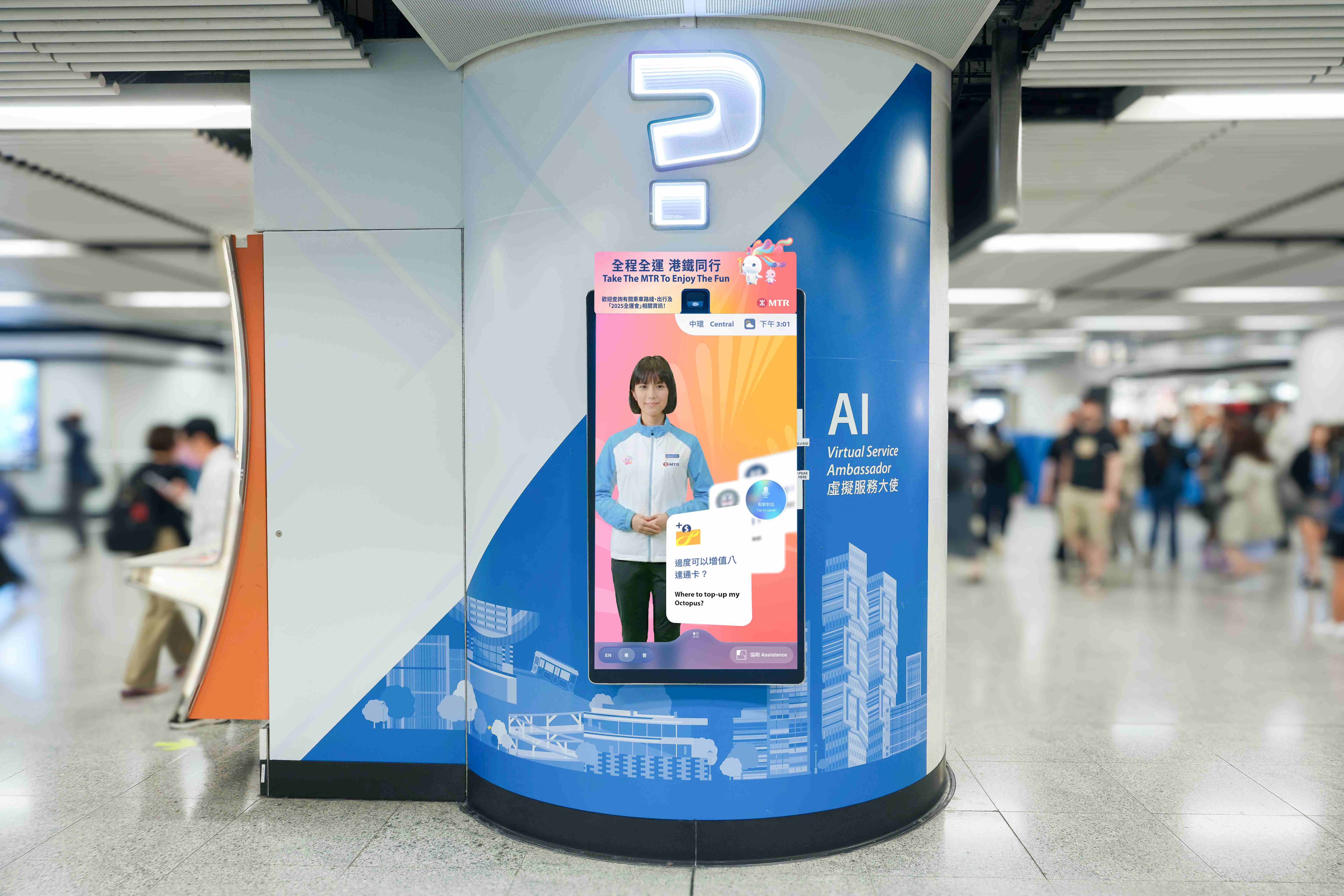 該15個車站亦會增加標示及前往場地的相關資訊。港鐵虛擬服務大使 Tracy 會在特定車站向乘客提供全運會資訊。多個港鐵站及港島綫、觀塘綫、荃灣綫、東鐵綫、屯馬綫及機場快綫的部分列車上會加上十五運會及殘特奧會的主題裝飾及打氣標語,讓乘客於港鐵旅程中感受全運會的熾熱氣氛。