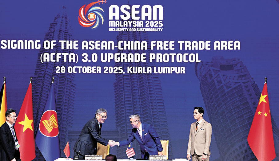 中國與東盟自2002年開啟自貿區建設進程,2010年自貿區1.0版全面建成,2015年完成2.0版升級。3.0版建設於2022年11月正式啟動,2025年5月全面完成談判。中國—東盟自貿區3.0版升級共涵蓋9個領域,包括數字經濟、綠色經濟、供應鏈互聯互通、標準和技術法規與合格評定程序、衞生與植物衞生措施、海關程序和貿易便利化、競爭和消費者保護、中小微企業、經濟技術合作。議定書簽署後,雙方將分別履行各自國內核准程序,推動議定書盡早生效實施。