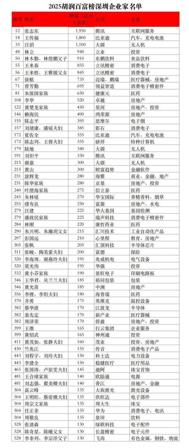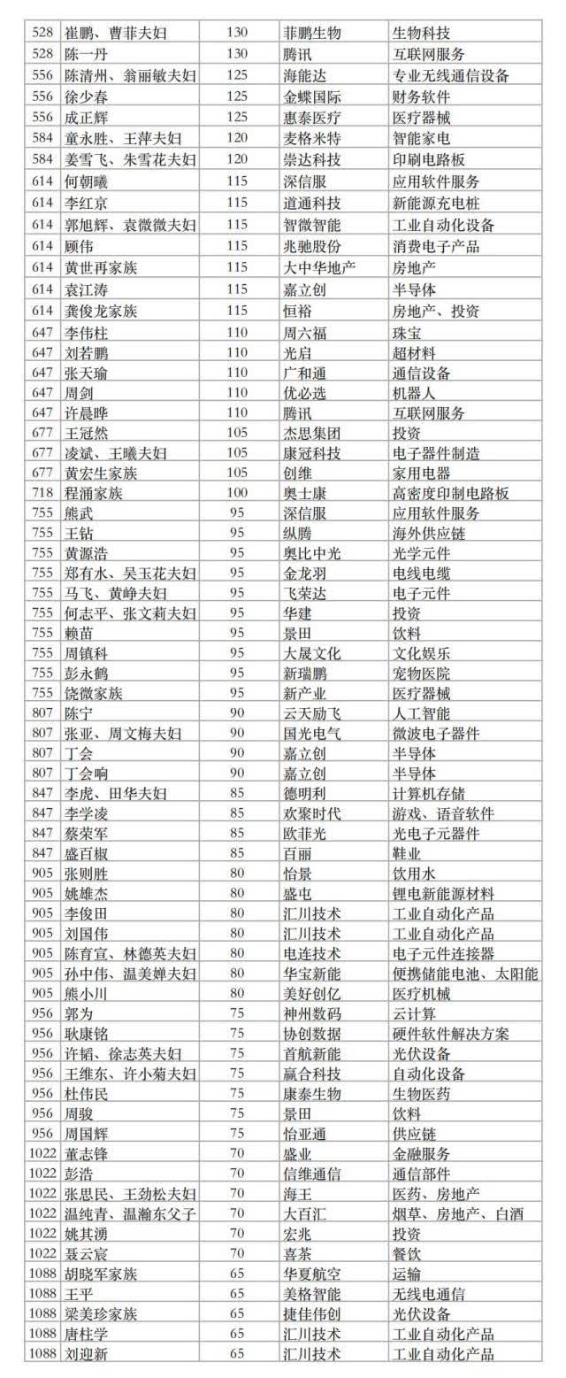 其中新入選的深圳企業家有40位,其中劉靖康、潘瑤夫婦以385億元遙遙領先。