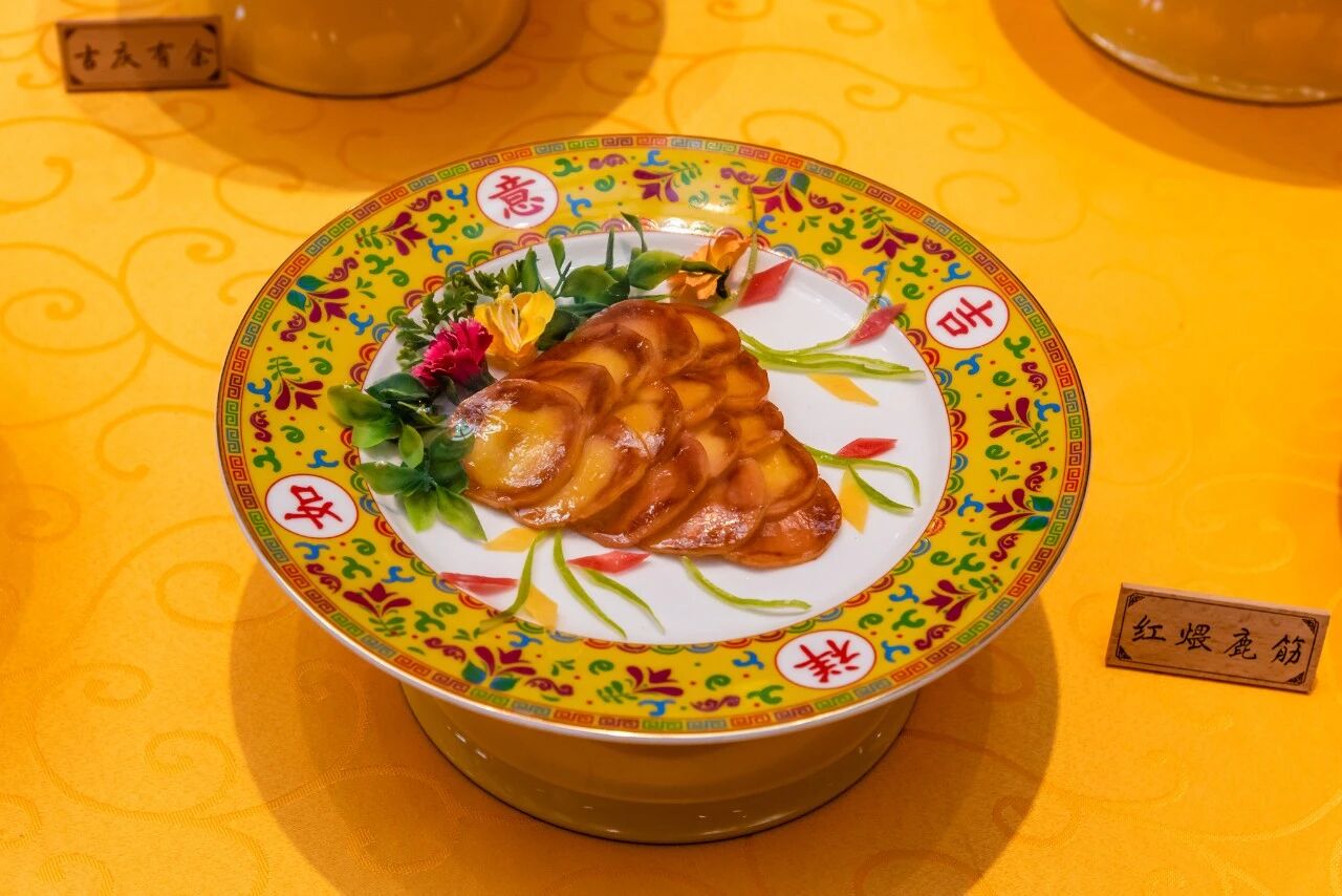 改刀肉、御品鍋、八仙過海、叫花子雞、御土荷葉雞、碗坨、萬字扣肉,壇燜肉、八旗羊湯、鮮花玫瑰餅……菜品十分豐富。當然,要說最出名的,還得是技藝精湛,食材豪華的「滿漢全席」。