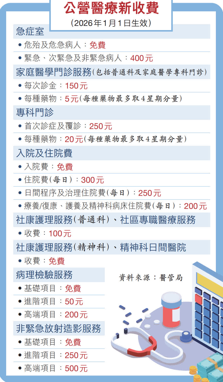 (香港文匯報記者 張弦)香港公營醫療服務收費改革將於明年元旦起生效,醫療費用減免機制及撒瑪利亞基金經濟審查準則亦同步優化,加強對「貧、急、重、危」病人的醫療保障,料合資格受惠人數將由目前的30萬大幅增加至140萬。醫管局公布,將採取一系列過渡安排,包括於下月3日起,接受已預約在未來兩個月內就診的病人提交費用減免申請。