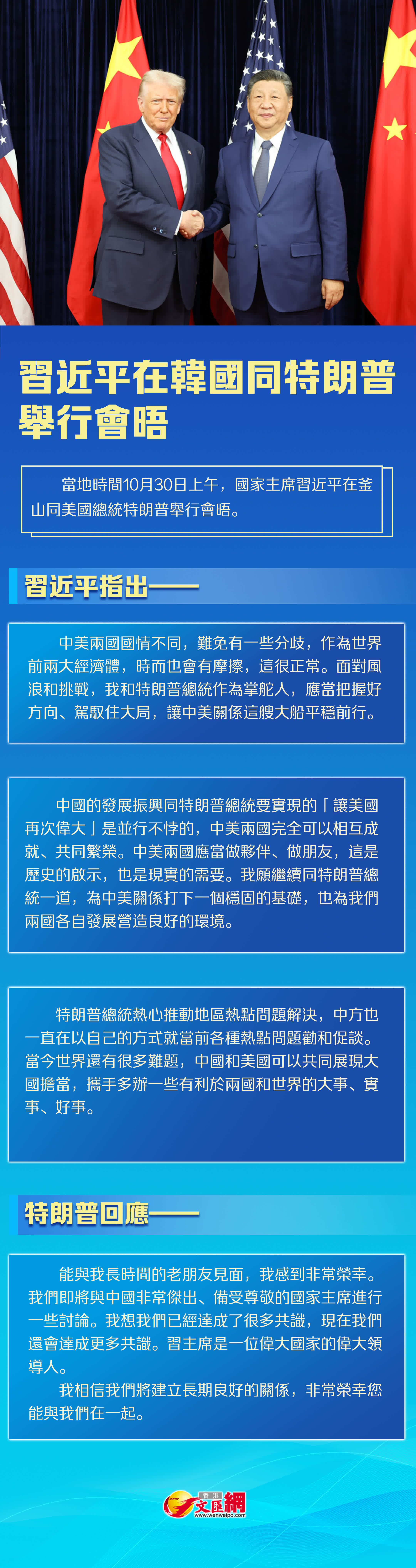 一圖 | 習近平同特朗普在韓國釜山舉行會晤
