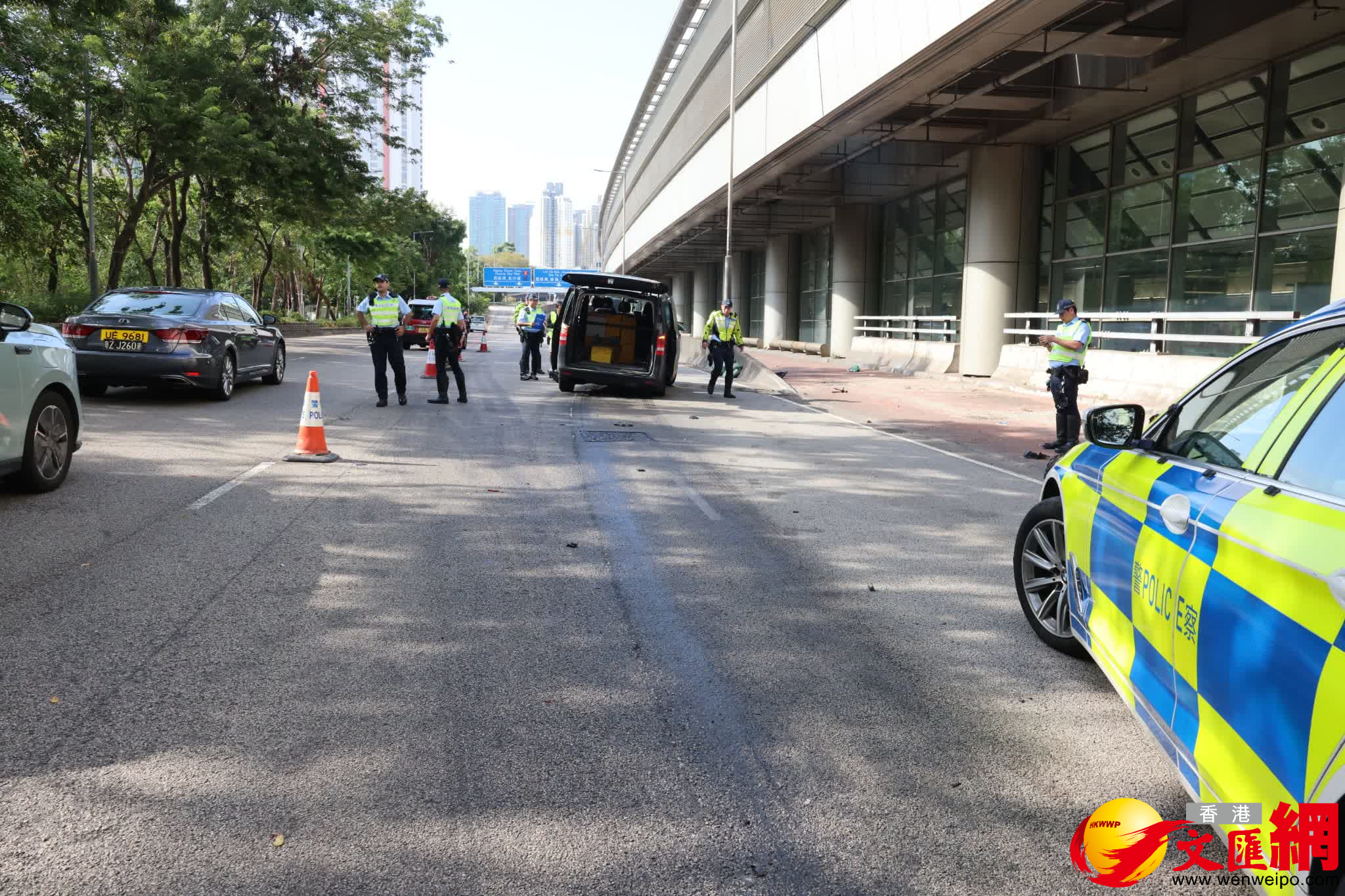 警員封鎖現場,客貨車司機在場助查。據悉涉事客貨車當時搭載乘客,有目擊意外的乘客聲稱,事發時有一輛貨車突然切線,客貨車閃避時撞倒電單車。
