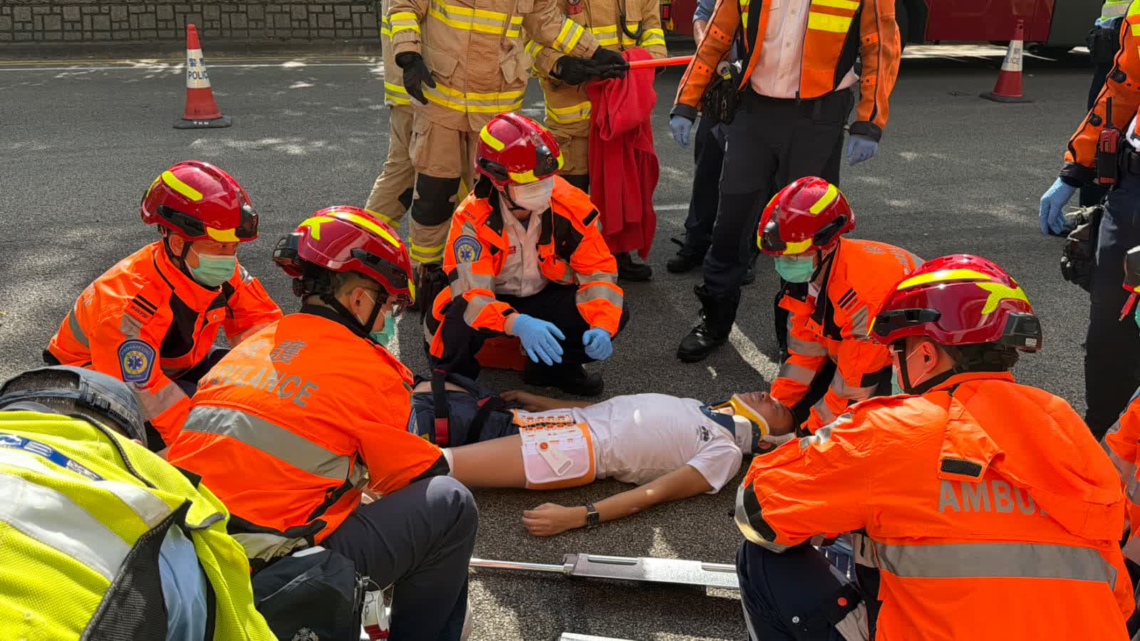 救援人員接報趕至,迅速救出姓李(48歲)鐵騎士,他腳部受傷,幸仍清醒,救護員替其戴上頸箍後,再由救護車送往瑪嘉烈醫院治理。