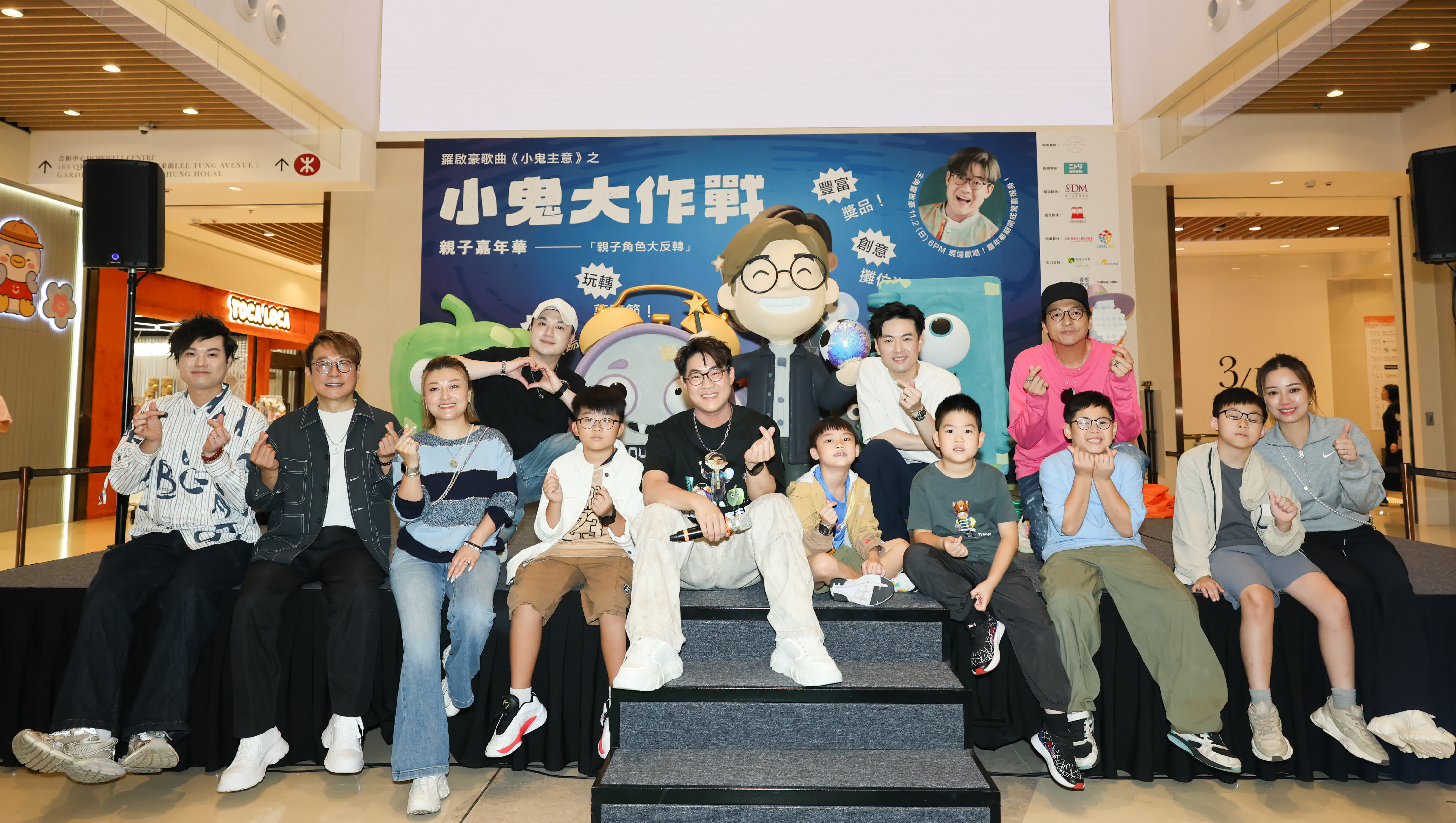 香港文匯報訊(記者 子棠)羅啟豪與其歌迷會「豪吧」主辦的親子嘉年華《小鬼大作戰》舉行開幕禮,啟豪邀得《中年好聲音》戰友李佳、丁文俊、魏嘉信、顏志恒太太Fion、沈宗賢、甘永傑、以及新歌《小鬼主意》MV導演Welby Chung與兒子到場;還率領藝人嘉賓及其兒女玩轉全場遊戲攤位。
