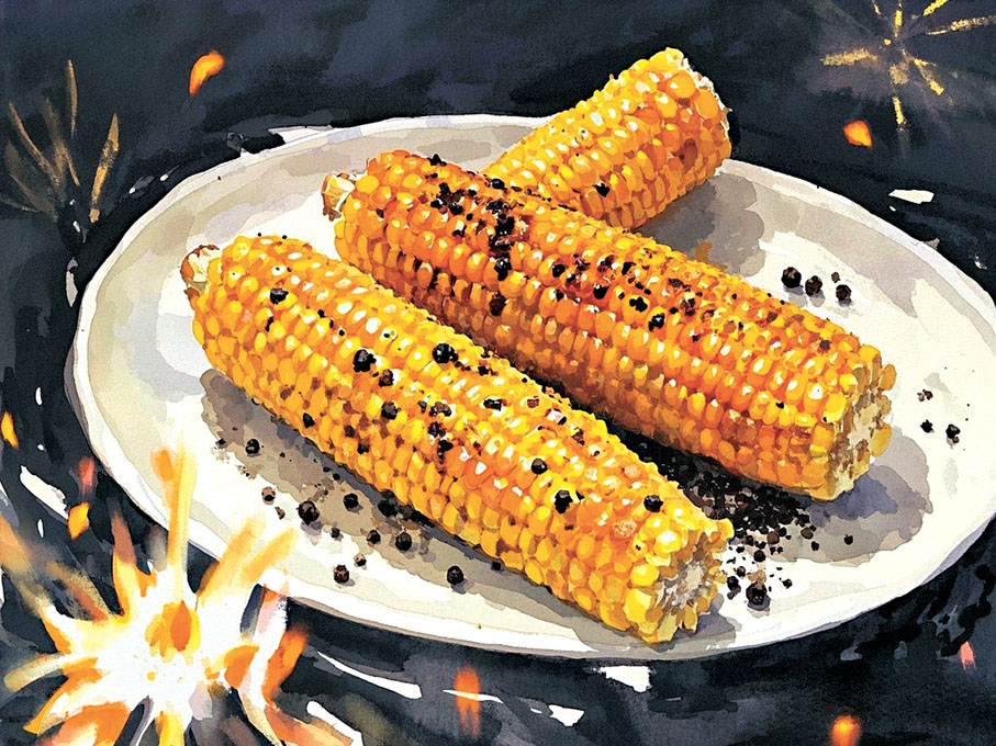 走近了才看清,攤主戴一副白手套,白得一塵不染。他坐在木馬扎上,炭火的熱與光跳躍在臉上,紅通通的,一張關公臉。爐火上,時而發出噼里啪啦的聲響,是苞米粒炸開的聲音,猶如一串歡快跳動的音符。那聲音裏能嗅到一縷柔香,好聽又好聞,悅耳又悅心。再看他身後,立着一個「綠棒子」——啤酒。他喝酒不像其他喝酒的人那樣舉瓶酣暢,痛快暢飲,只是想起來才抿一口,目光卻始終落在手裏的活上。苞米不時轉動,一個挨一個地轉,米粒從乳黃到金黃,再漸漸到深黃,熟的過程不能怠慢,烤煳了,損失的不只是錢,寶貴的是時間。有時候,留幾葉水分足的苞米皮子,才不至於烤煳苞米。