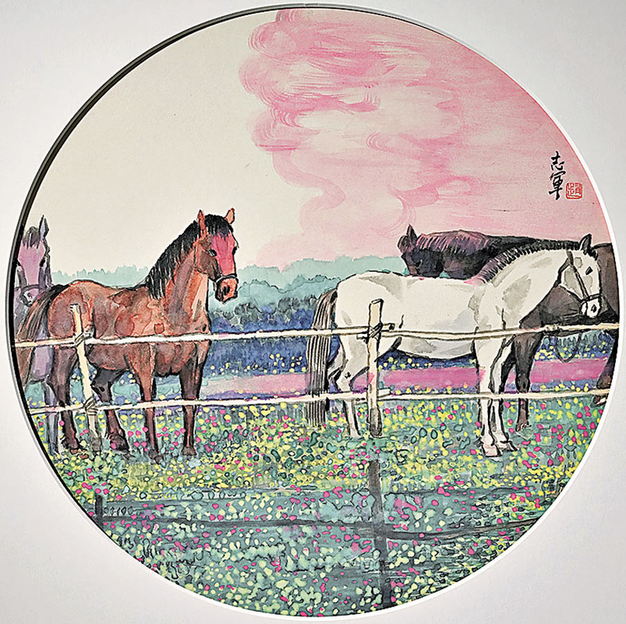 現場展出《金光一霎鍍千峰》、《一團和氣》、《匯聚之七》、《逃之夭夭之二》等山水畫、花卉題材作品,展現趙之境對故鄉廣袤的草原和亞洲最完整的火山群地質奇觀的勾勒;烏蘭察布的紅色岩石和碧綠草原滋養出藝術家對色彩的獨特敏感;文明和時間之永恒話題,又建構出了其作品對於哲理命題的追思。