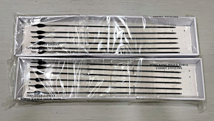 另一方面,警方國安處的調查行動仍在持續,本周三(29日)下午突擊搜查九龍區一單位,檢獲3把複合弓連同12支箭,以及兩把武士刀,並拘捕一名46歲男子,他涉嫌違反香港法例第228章《簡易程序治罪條例》下「管有攻擊性武器並有所意圖」罪,正被扣留調查。警方表示,相關執法行動仍在進行中,警方不排除有進一步拘捕行動。