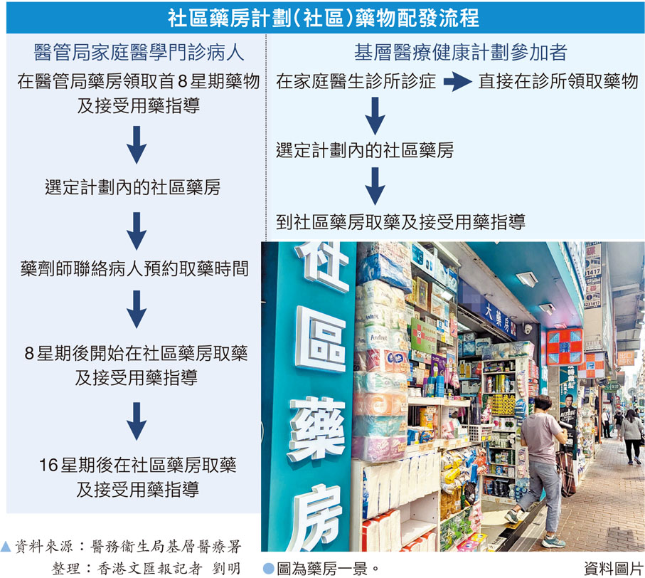 去年的施政報告提出制訂社區藥物名冊及推出社區藥房計劃,香港特區政府基層醫療署昨日公布名冊運作機制,並推出相關指引(見另稿),以配合最快明年第四季起推行的社區藥房計劃,屆時醫管局病人可便捷地獲取基層醫療藥物及專業社區藥房服務,藥物收費水平與醫管局一致。參與基層醫療健康計劃的市民亦能以共付模式取得名冊內藥物,共付金額將於明年下半年公布,政府將提供資助,確保屬市民可負擔水平兼遠低於市場價格。名冊所列藥物主要選取自醫管局藥物名冊,由醫管局統籌採購以確保其安全、療效及質量保證,更可通過共同採購降低成本,初期涵蓋逾100項藥物,未來可望涵蓋達200項至400項。醫務衞生局計劃於未來兩個月內先為東區、油尖旺、沙田及元朗的社區藥房招標,料明年第四季開展服務,目標是至2027年第四季於全港十八區均有4間至5間社區藥房。 ●香港文匯報記者 李千尋