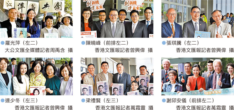 香港文匯報訊(記者 黃子晉、黃子龍)13位來自香港各界的翹楚昨日正式報名參選立法會功能界別選舉。他們期望用自己的專業知識,助力北部都會區提速提效發展,推動香港金融市場融入國家發展大局,強化香港國際法律服務及爭議解決樞紐地位,以及推動中企高質量發展,期望進入議會後服務香港、報效國家,為香港的繁榮穩定而努力。