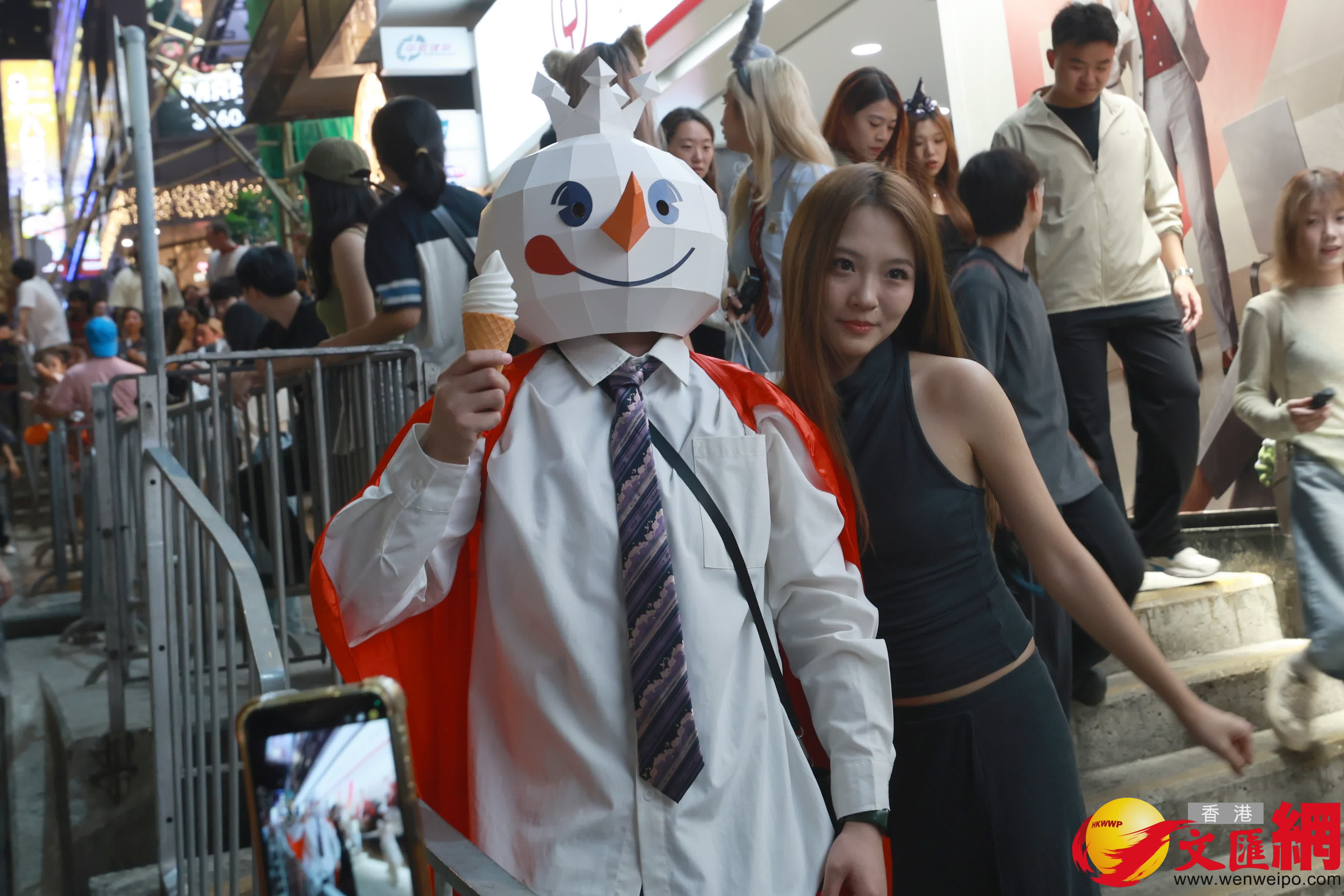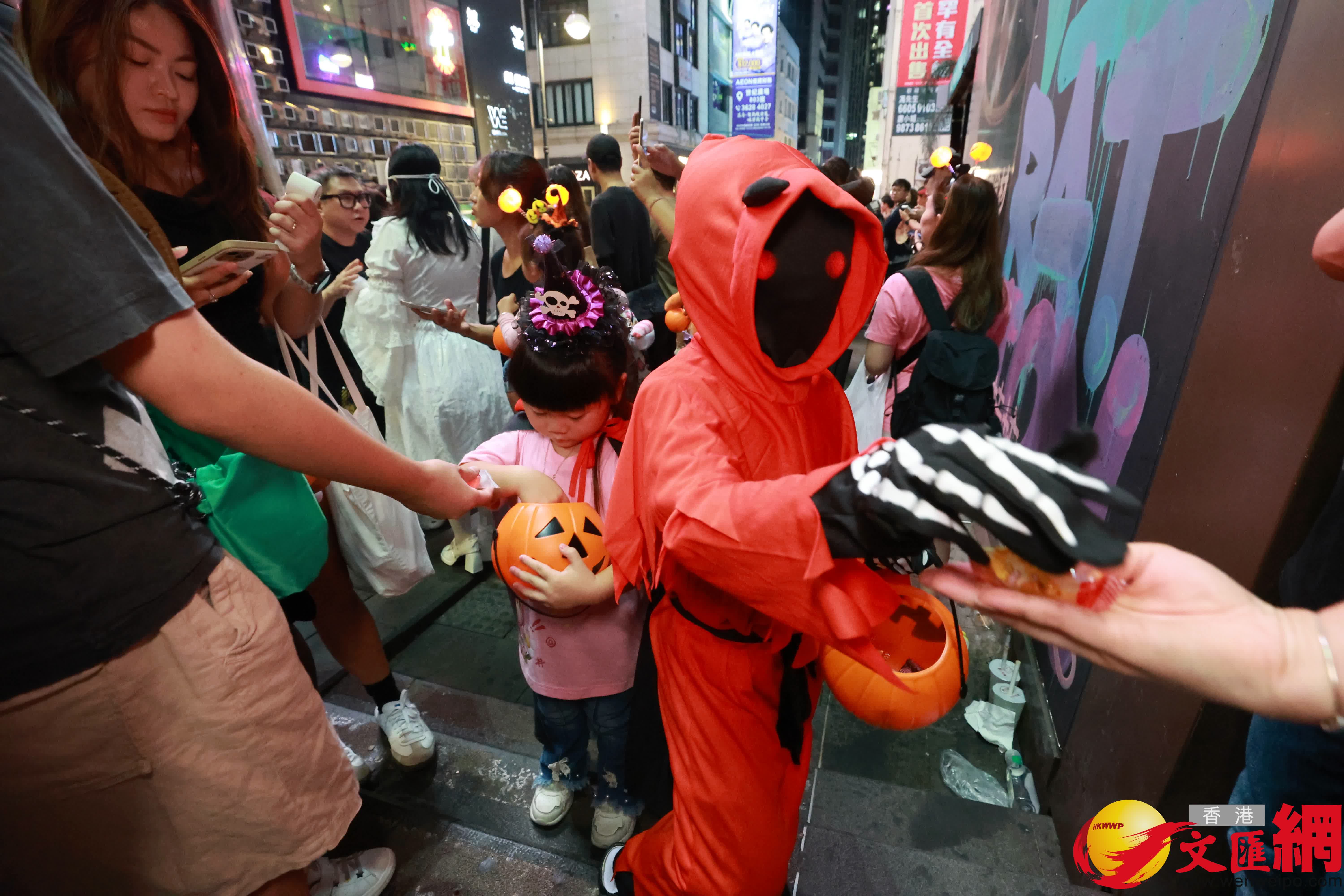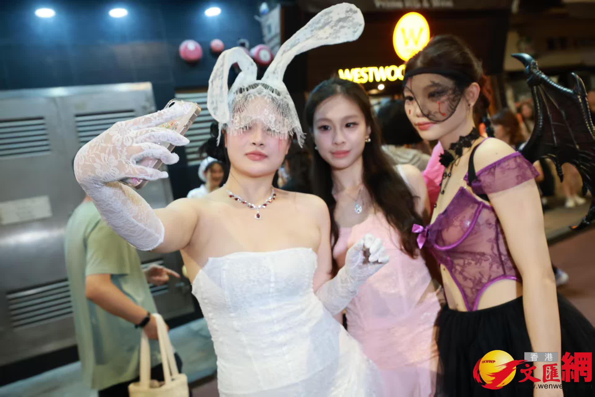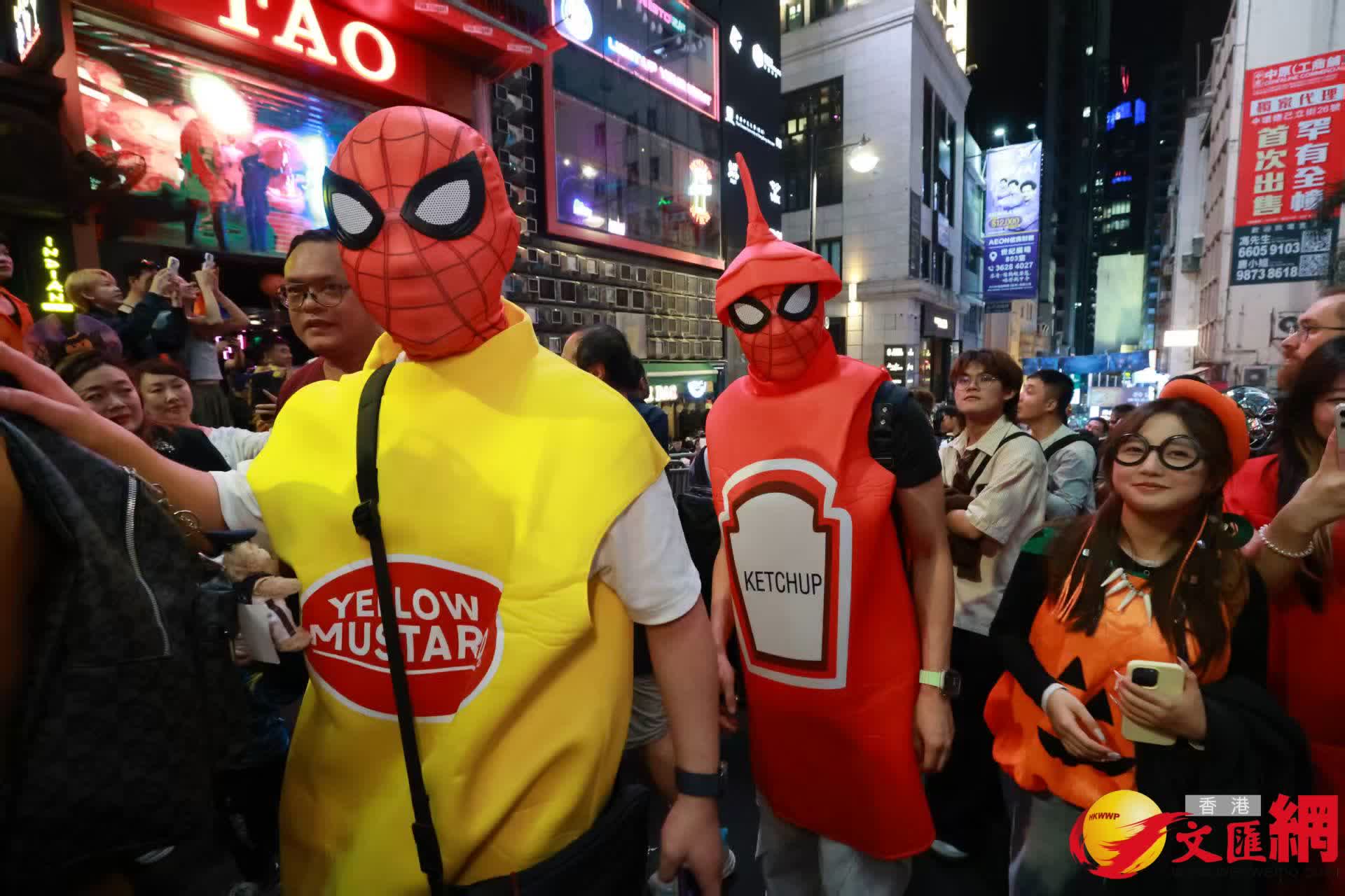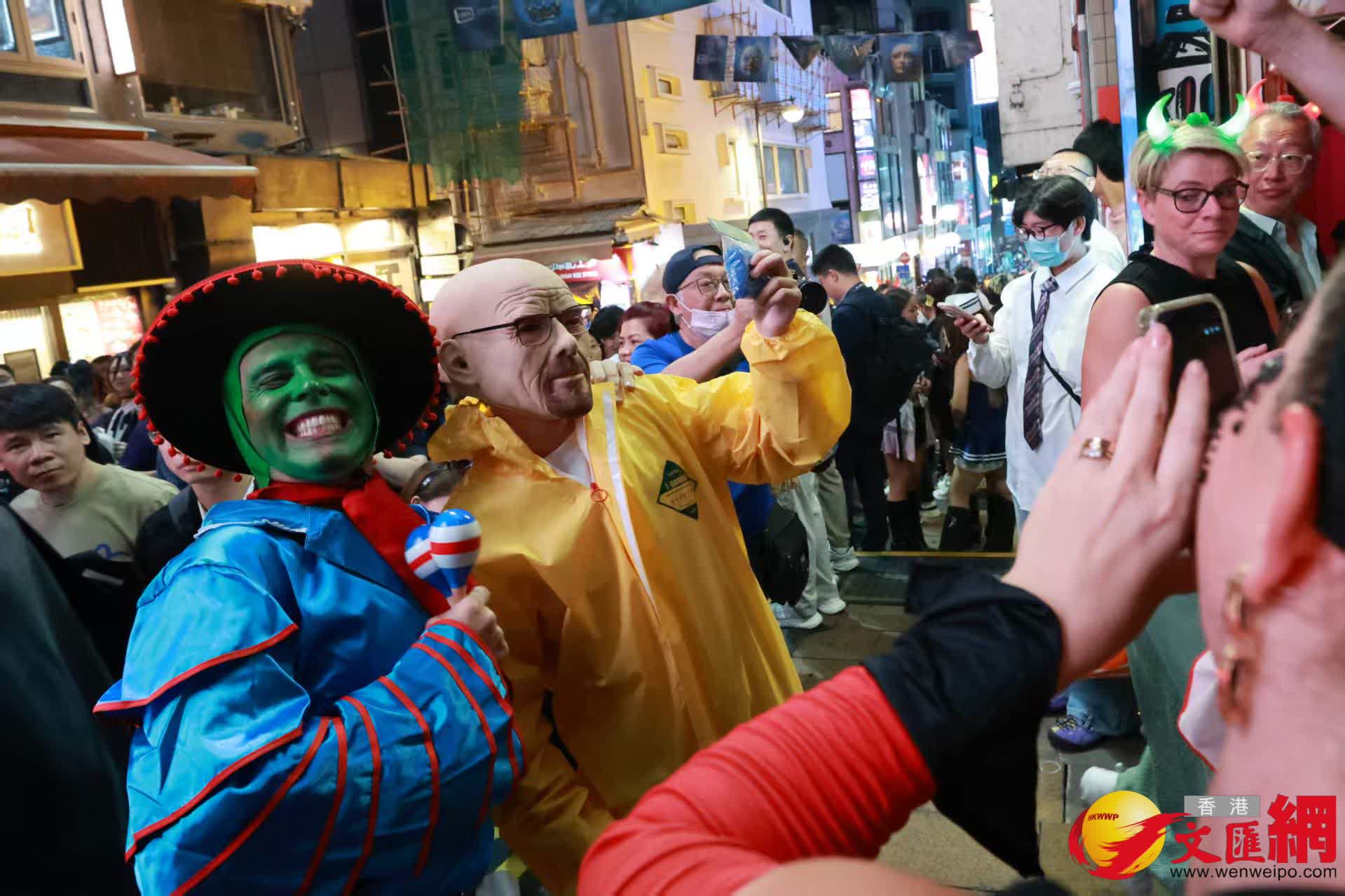 今日(31日)是萬聖節,中環蘭桂坊晚上出現「百鬼夜行」,有大批市民「扮鬼扮馬」。(香港文匯報記者 北山彥攝)