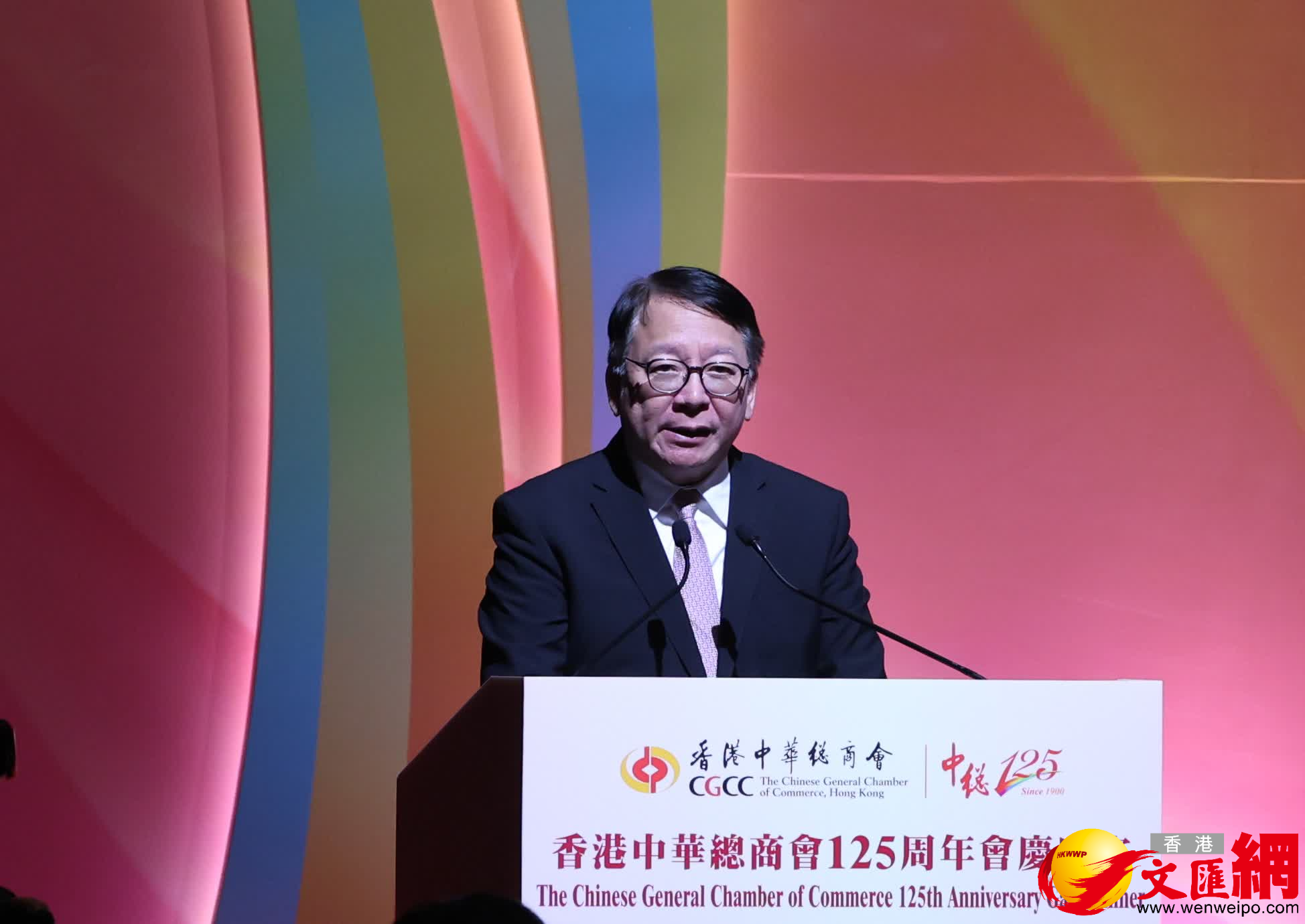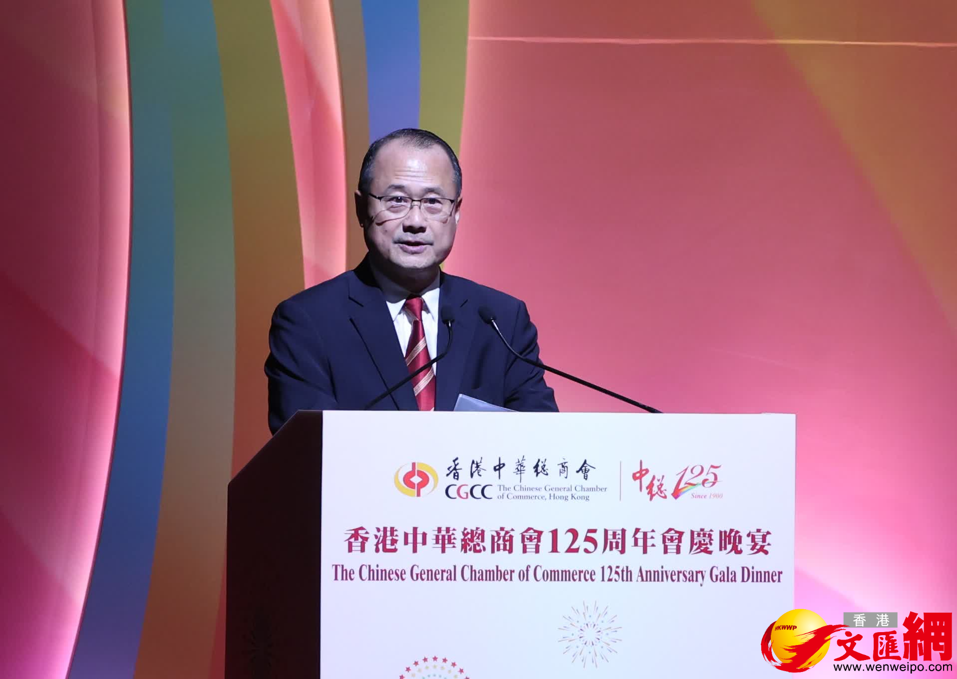 (香港文匯報記者 嚴鍇華)香港中華總商會今日(31日)舉行125周年會慶晚宴,香港特區署理行政長官陳國基致辭表示,特區政府將繼續鞏固香港的固有優勢,並發掘新增長點,加快發展北部都會區和建設國際創新科技中心,而隨着內地企業出海步伐明顯加快,特區政府已成立內地企業出海專班,吸引更多內地企業選擇香港作為拓展海外業務的首選平台。中總會長蔡冠深表示,香港工商和社會各界必須抓準定位,對接好「十五五」規劃,更好擔當「超級聯繫人」和「超級增值人」,展現「內聯外通」雙向平台的獨特功能,發揮香港所長,服務國家所需。