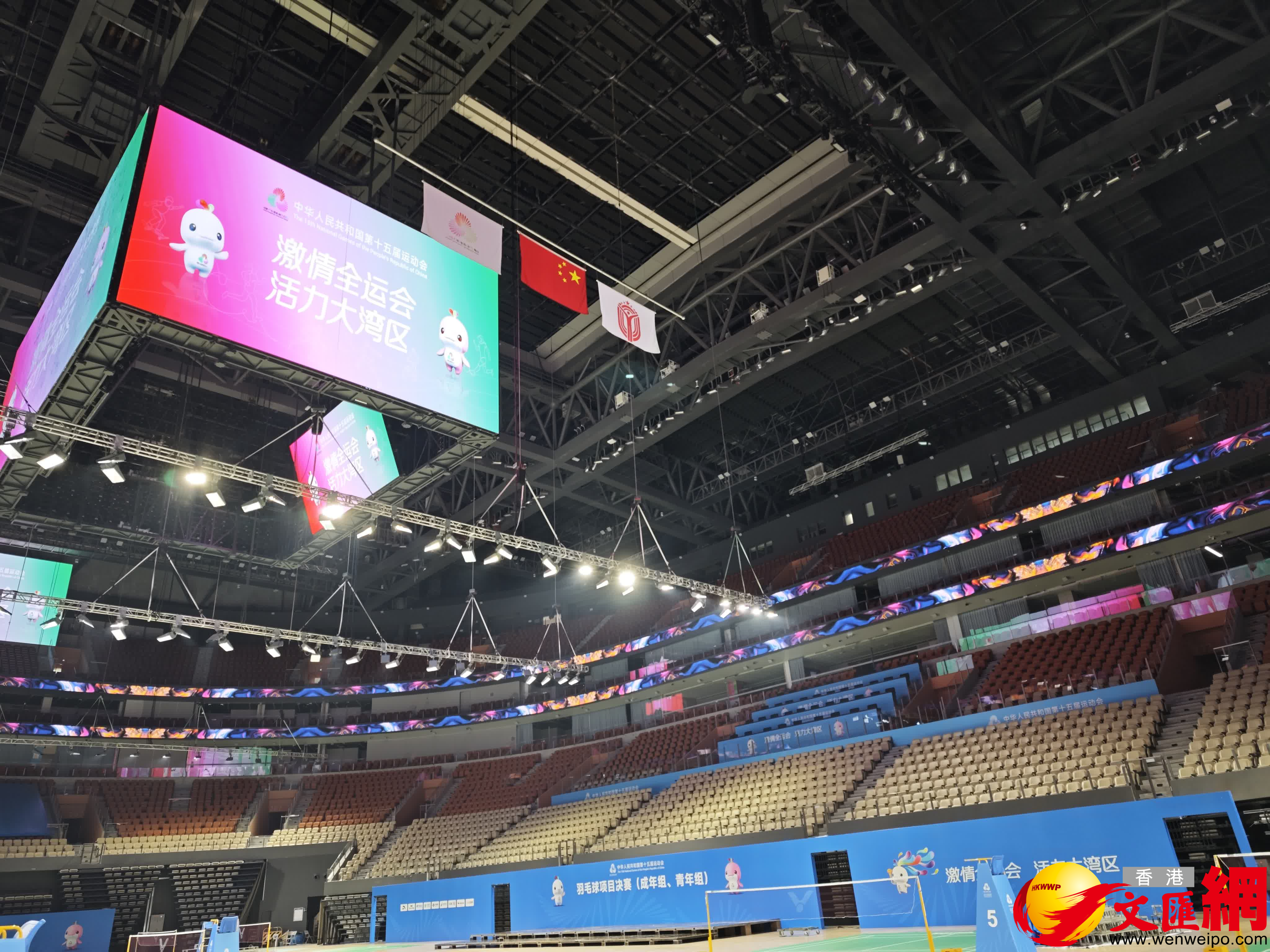 (香港文匯網記者 李薇、胡永愛 深圳報道)十五運會和殘特奧會廣東賽區執委會新聞廣電宣傳部組織的「十五運看廣東」媒體採訪團29日來到深圳市體育中心,實地探訪十五運會深圳賽區賽事的籌備和服務保障情況。記者了解到, 十五運會深圳賽區競技比賽共設12個項目89個小項,約佔廣東賽區25%。其中,深圳市體育中心承辦羽毛球、足球(男子20歲以下組和男子18歲以下組)、射箭、飛鏢等項目賽事。「目前深圳市體育中心的各項籌備工作已基本就緒,像體育場,我們運用智慧科技設置4塊巨型屏幕組成『光影矩陣』,可為觀眾提供多視角觀賽及周到的服務。」深圳市體育中心運營管理有限公司信息技術部專家呂佩蕾透露。