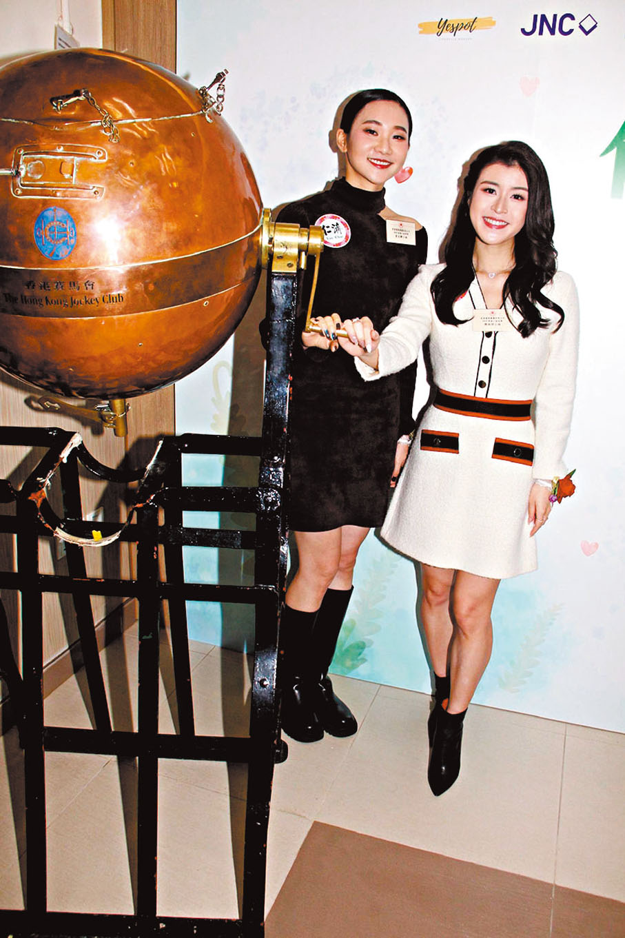 香港文匯報訊(記者 達里)應屆港姐冠軍陳詠詩(Stacey)與季軍袁文靜(Jane)昨日參與「仁濟慈善獎券攪珠儀式」,亞軍施宇琪因有急事而臨時缺席。首次擔任攪珠嘉賓的兩位港姐都大呼好玩,不過攪珠機比想像中更重。談及抽獎運,Stacey回憶讀書時曾在籃球賽抽中耳機,Jane則笑稱最大的幸運就是當選港姐。