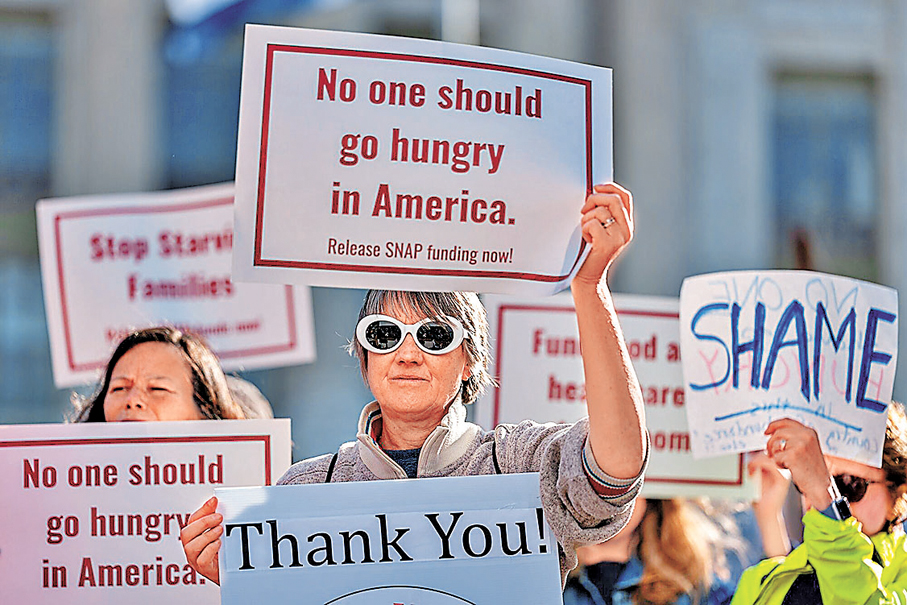 香港文匯報訊 美國聯邦政府自今年10月1日起至今已停擺一個月,民主黨主政的紐約州和馬里蘭州政府周四(10月30日)宣布,由於幫助低收入民眾購買食品雜貨的「補充營養援助計劃」(SNAP)資金本周末耗盡,兩州已進入緊急狀態。民主黨人普遍指責總統特朗普以中斷SNAP資金施壓,試圖迫使民主黨妥協,接受共和黨的臨時開支方案,令4,200萬民眾面臨斷糧風險。
