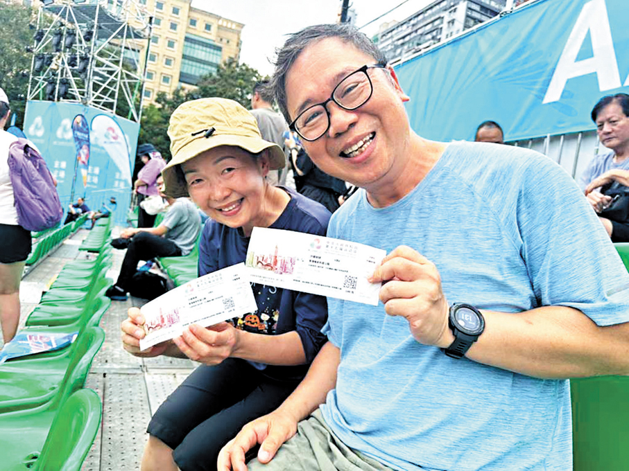 香港文匯報訊(記者 郭正謙)在鬧市中感受沙排魅力機會難逢,不少市民均趁今次全運會前來維園體驗,首日AA區門票更全部售罄,從沒看過沙排比賽的郭生郭太特意購票入場支持港隊,他們表示雖然被曬到汗流浹背,不過能夠親身表達對香港運動員的支持,辛苦一點也是值得。