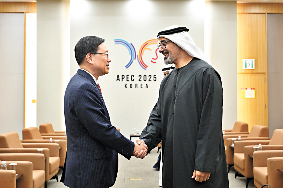 李家超與阿聯酋阿布扎比王儲哈立德會面期間表示,包括阿聯酋在內的海灣阿拉伯國家合作委員會(海合會)是香港在中東的重要合作夥伴,同時是國家「一帶一路」倡議的重要節點,香港重視與海合會國家拓展更緊密的經貿關係。